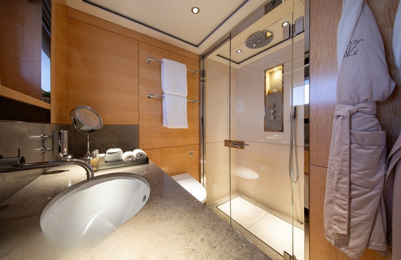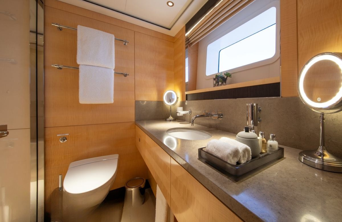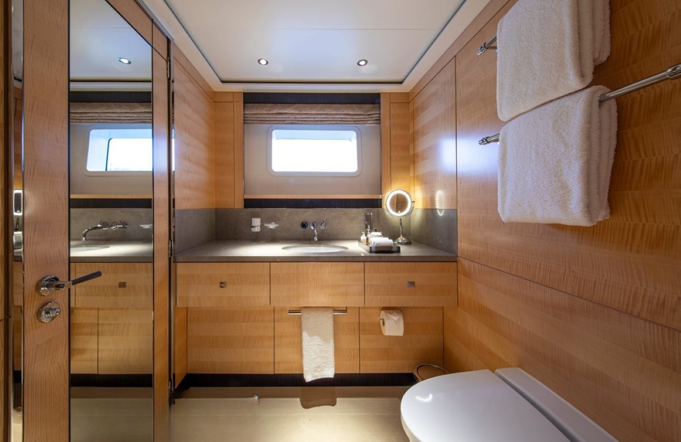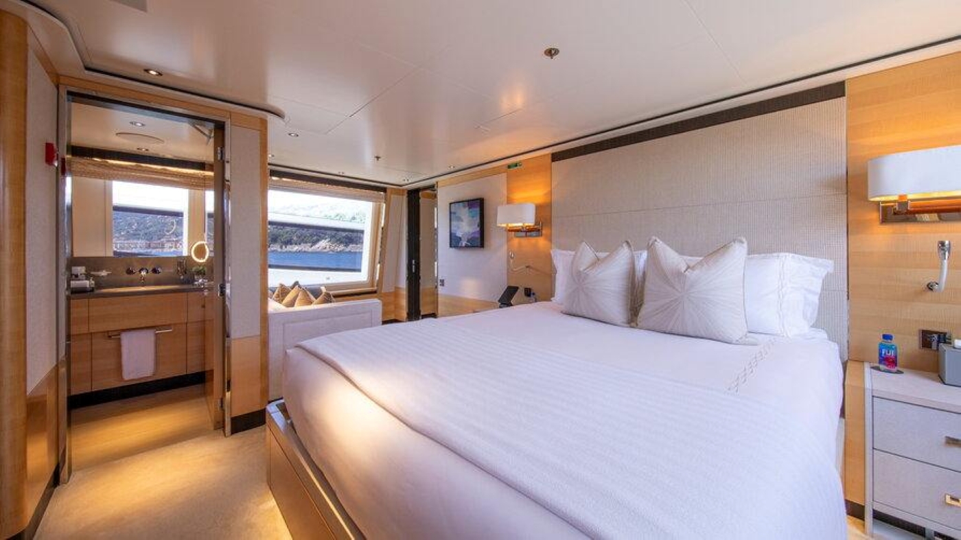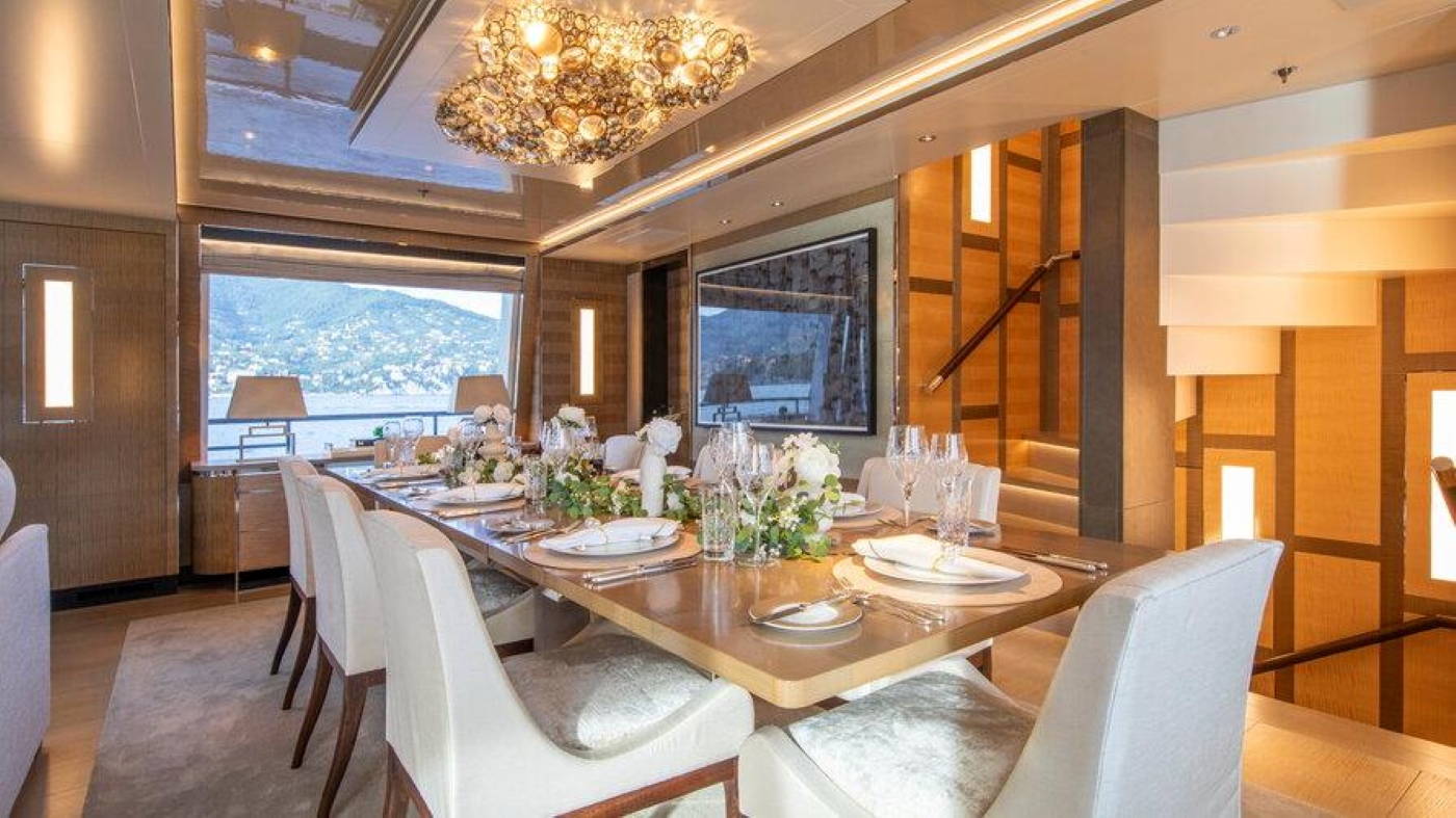 Luxury yacht LADY VICTORIA boasts a unique accommodation layout for up to 10 guests, with the entire upper deck dedicated to the Owner. Fitted with a six-seat dining table on the aft deck and a comfortable saloon, the owner’s cabin can be found in the forward section. There are also five lovely guest cabins, including three twin, a double as well as a VIP. KISS yacht's professional crew of 9 sleep in 6 crew cabins.