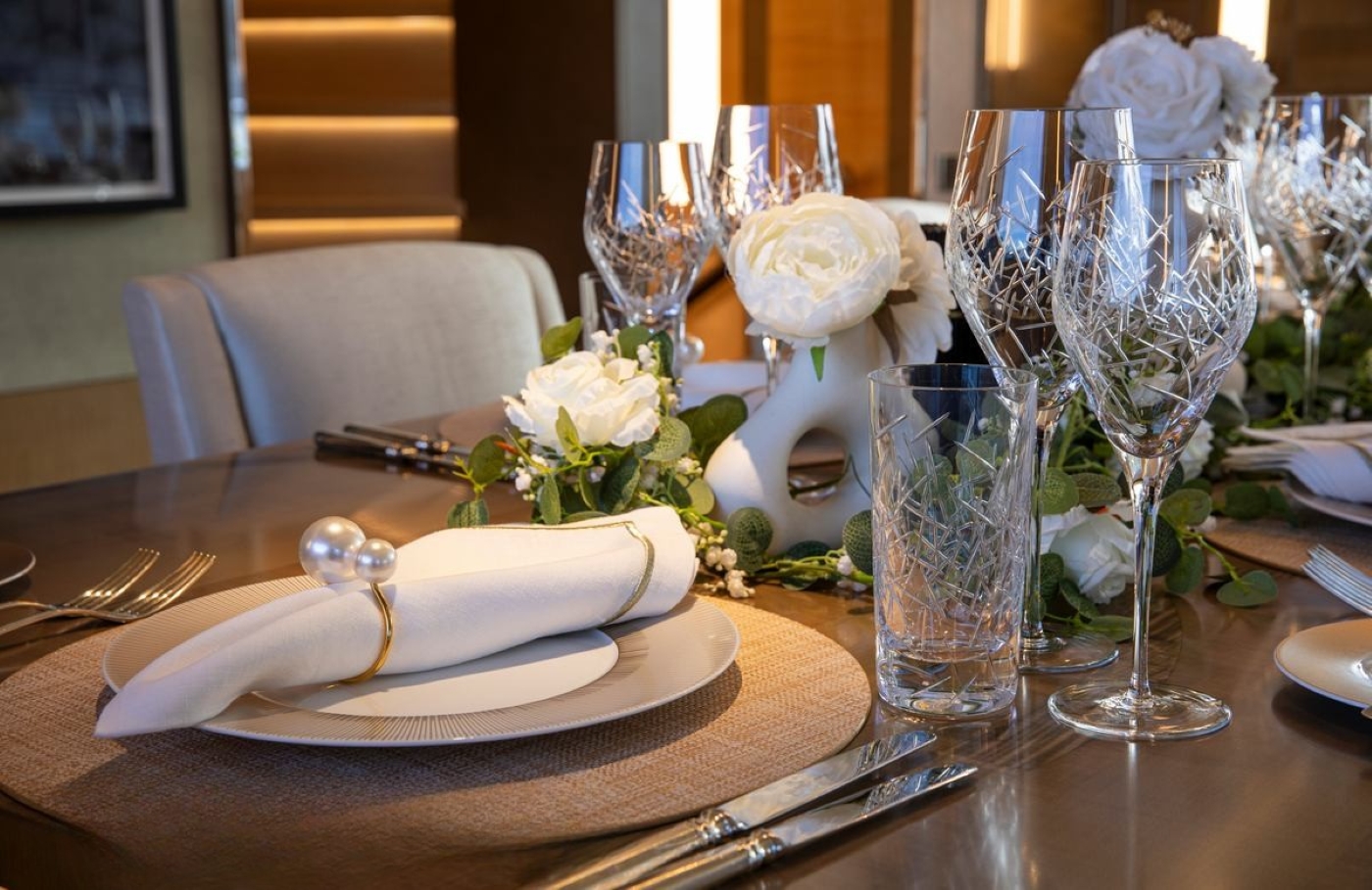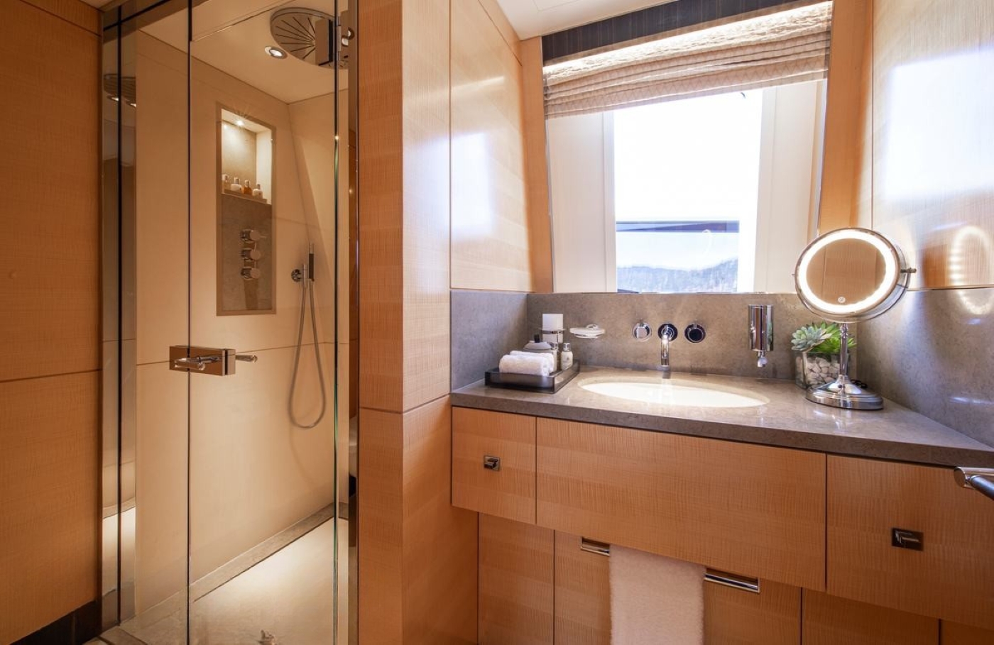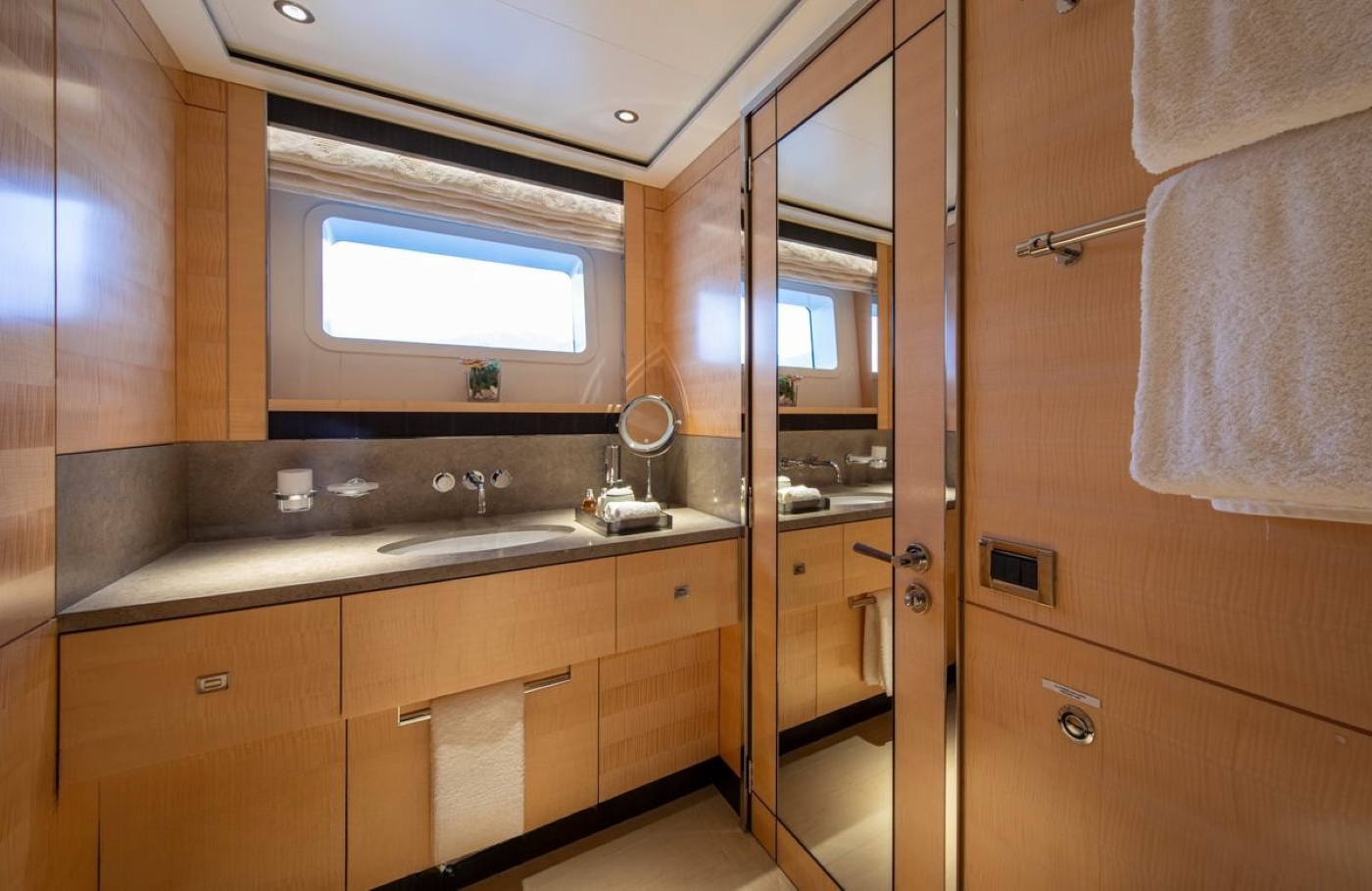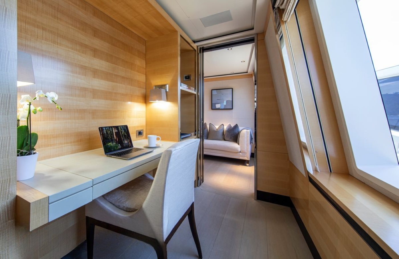 Luxury yacht LADY VICTORIA boasts a unique accommodation layout for up to 10 guests, with the entire upper deck dedicated to the Owner. Fitted with a six-seat dining table on the aft deck and a comfortable saloon, the owner’s cabin can be found in the forward section. There are also five lovely guest cabins, including three twin, a double as well as a VIP. KISS yacht's professional crew of 9 sleep in 6 crew cabins.