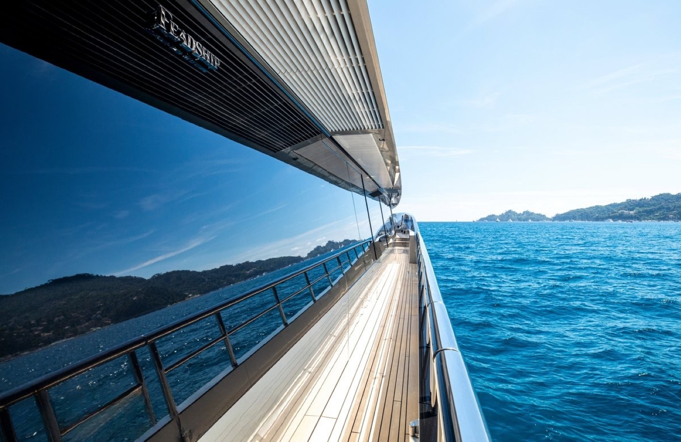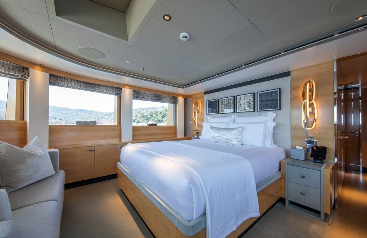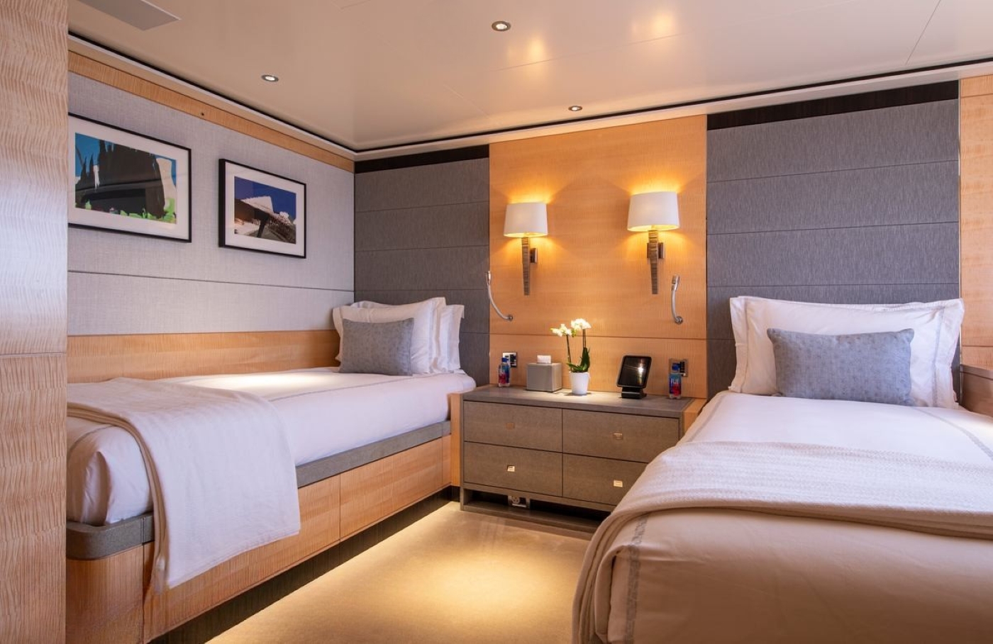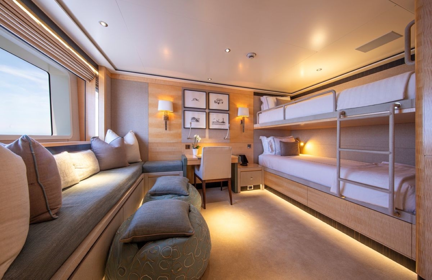The maximum number of 10 guests can be accommodated aboard the 46m Feadship yacht KISS in comfort and luxury. She offers 6 beautiful and elegant cabins, including the Owner's cabin, a VIP cabin, a double cabin, as well as 3 twin cabins. She carries a 9 friendly crew, sleeping in 6 crew cabins.