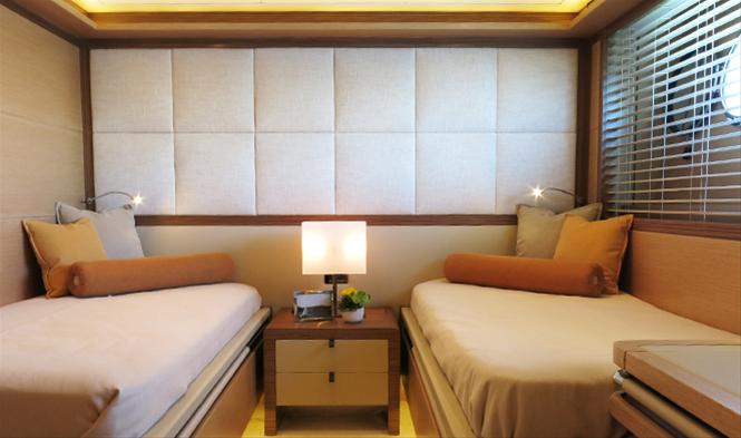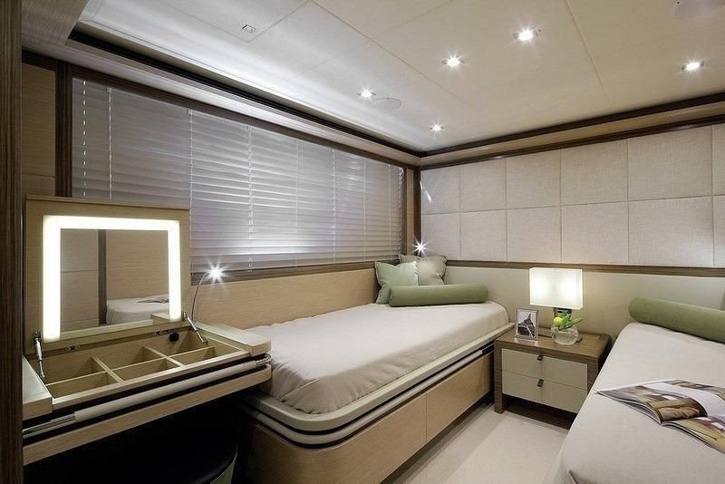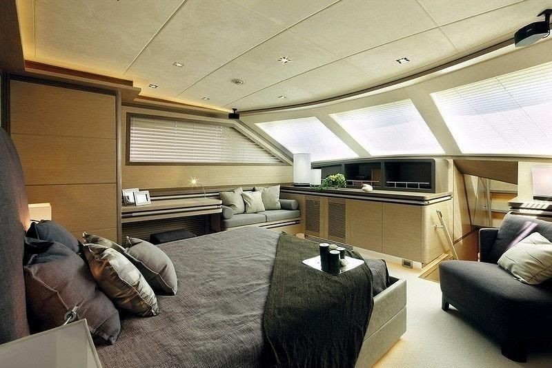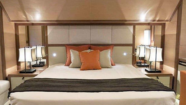 Horizon RP105 superyacht Agora can comfortably sleep her guests in 5 magnificent cabins. She features a full-beam master stateroom on the main deck, as well as four large en-suite cabins, all situated below deck. The vessel's highly trained crew sleep in 3 crew cabins.