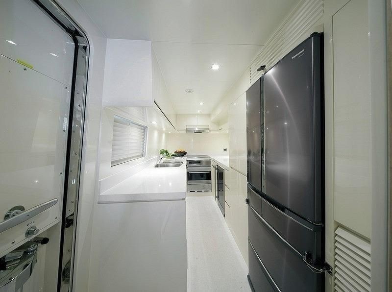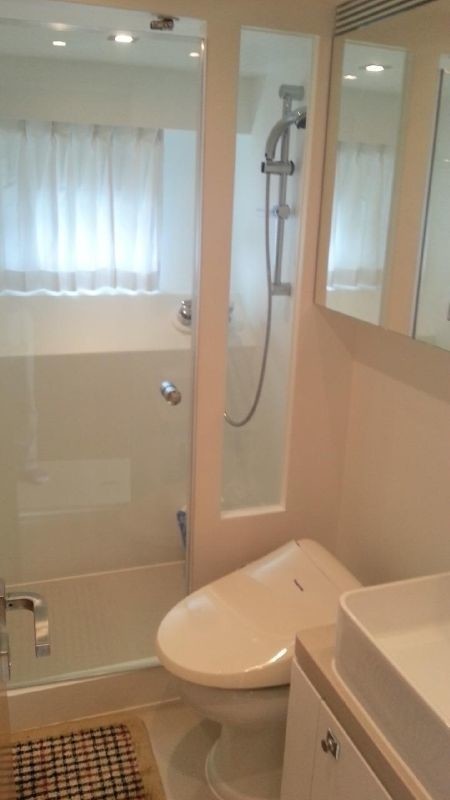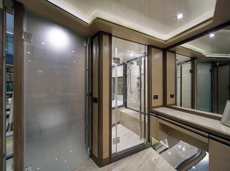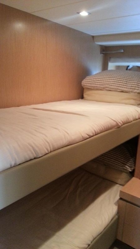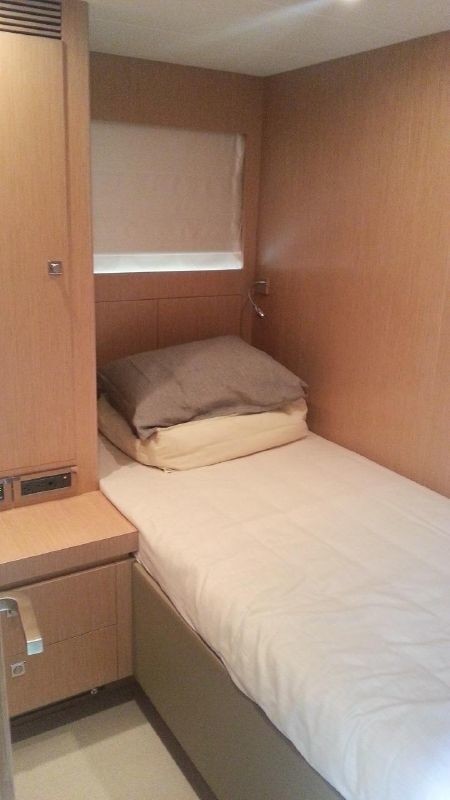 Accommodation aboard Horizon RP105 yacht Agora is provided in 5 lovely cabins. There is a full-beam master stateroom on the main deck, featuring a lower-level master head. In addition, four large en-suite cabins can be found below deck. The main deck also boasts a main salon, formal dining area, as well as fully-equipped galley. The vessel's professional crew sleep in 3 crew cabins.