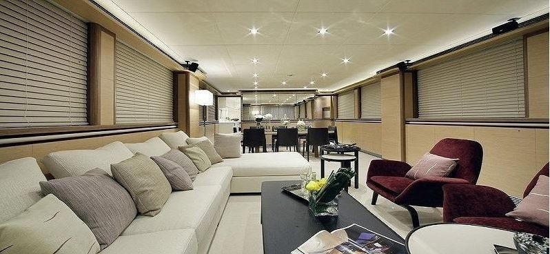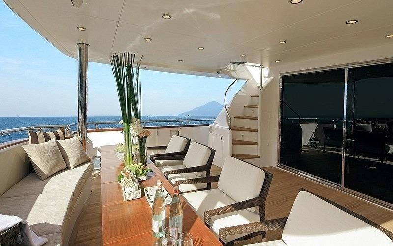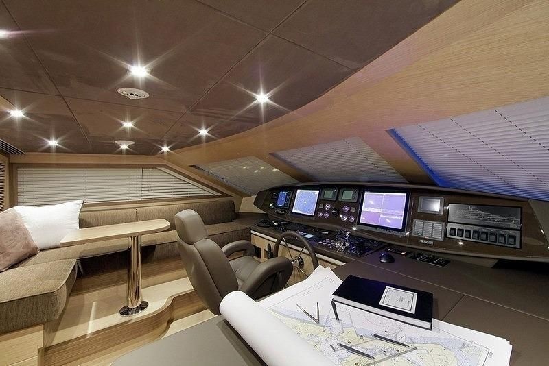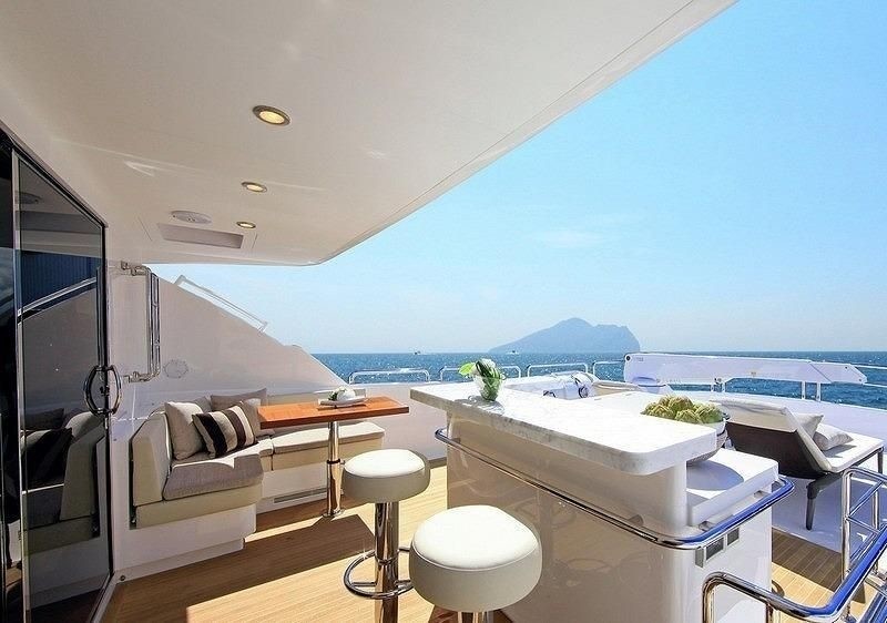 Among special features of superyacht Agora belongs the enclosed flybridge, which incorporates a pilothouse forward as well as generous salon mid-ship for more flexible entertaining options. The vessel also offers an exterior cocktail bar and sunpads on the bridge deck.