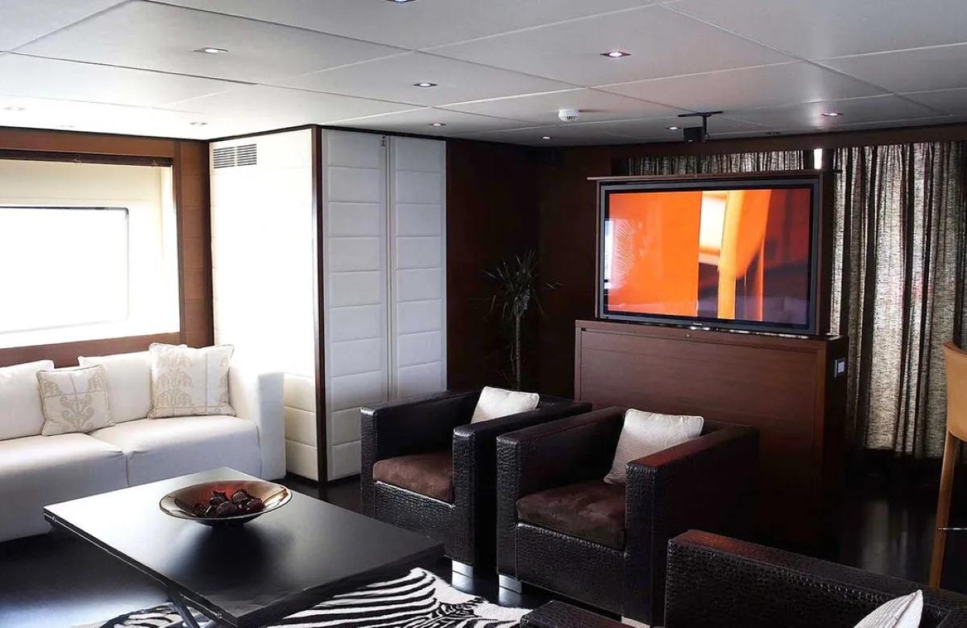 The Bridge Deck is the most frequented area with a large al fresco dining table for 12 guests and a 180° sofa bench sheltered from the sun. This area is also appreciated for its privacy when the yacht is docked in port. With its rotating system, the TV in the sky lounge can be watched from outside.