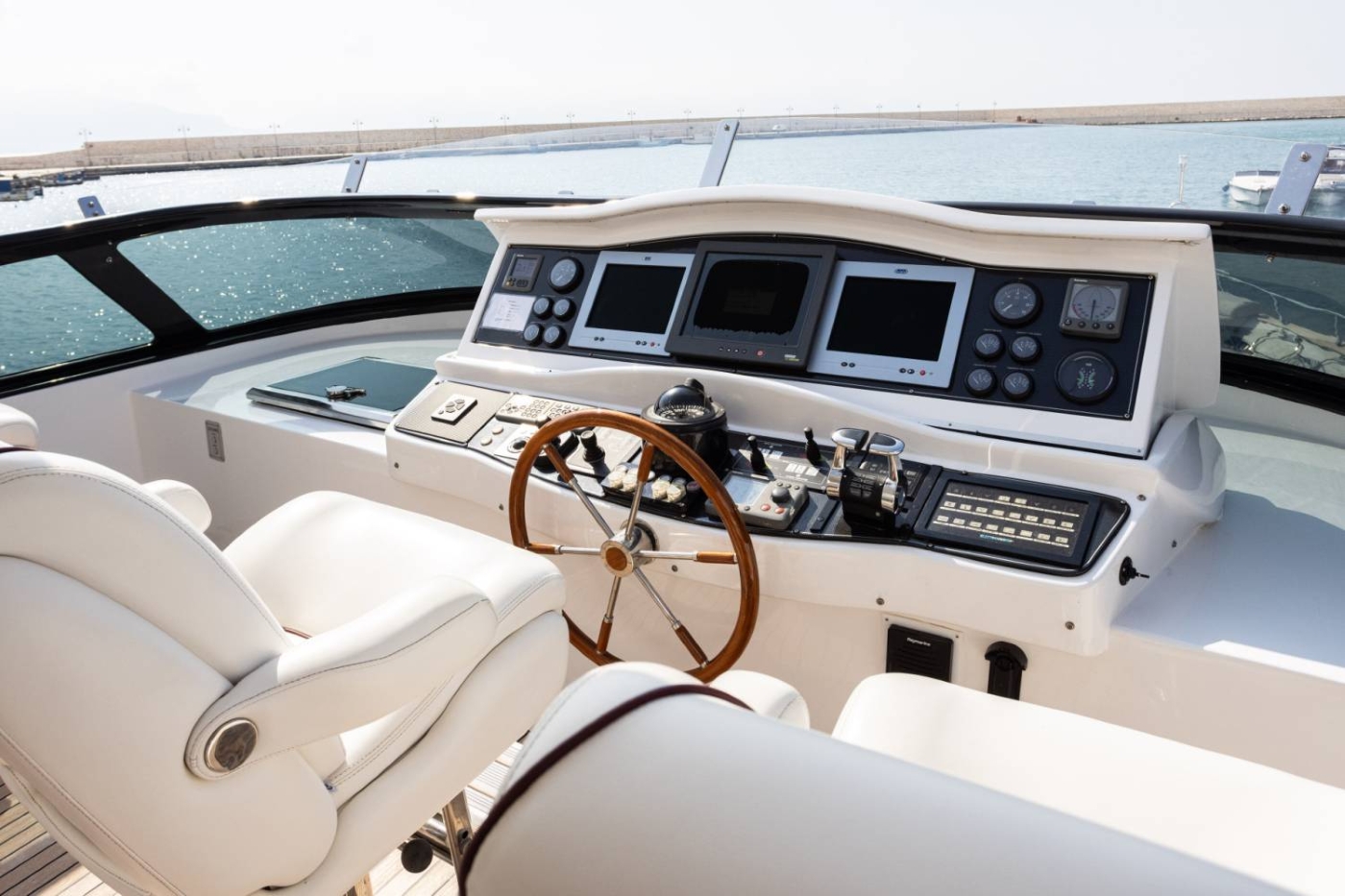 Built-in fibreglass, the 27-metre superyacht ANTARAH can achieve a top speed of 24 knots and a cruising speed of 16 knots, thanks to her twin MTU 1935 HP diesel engines.
