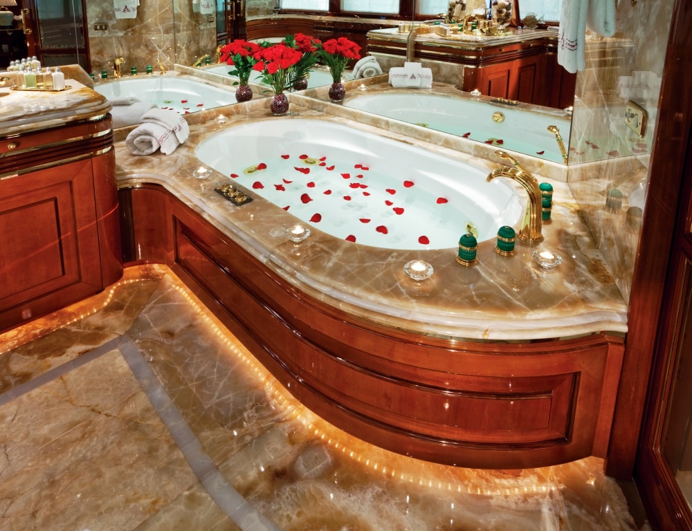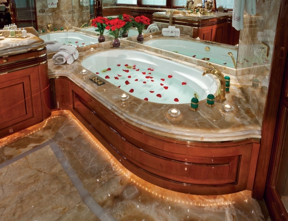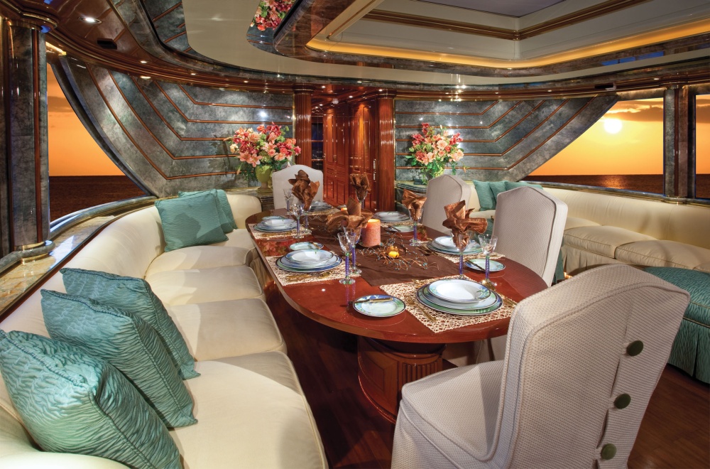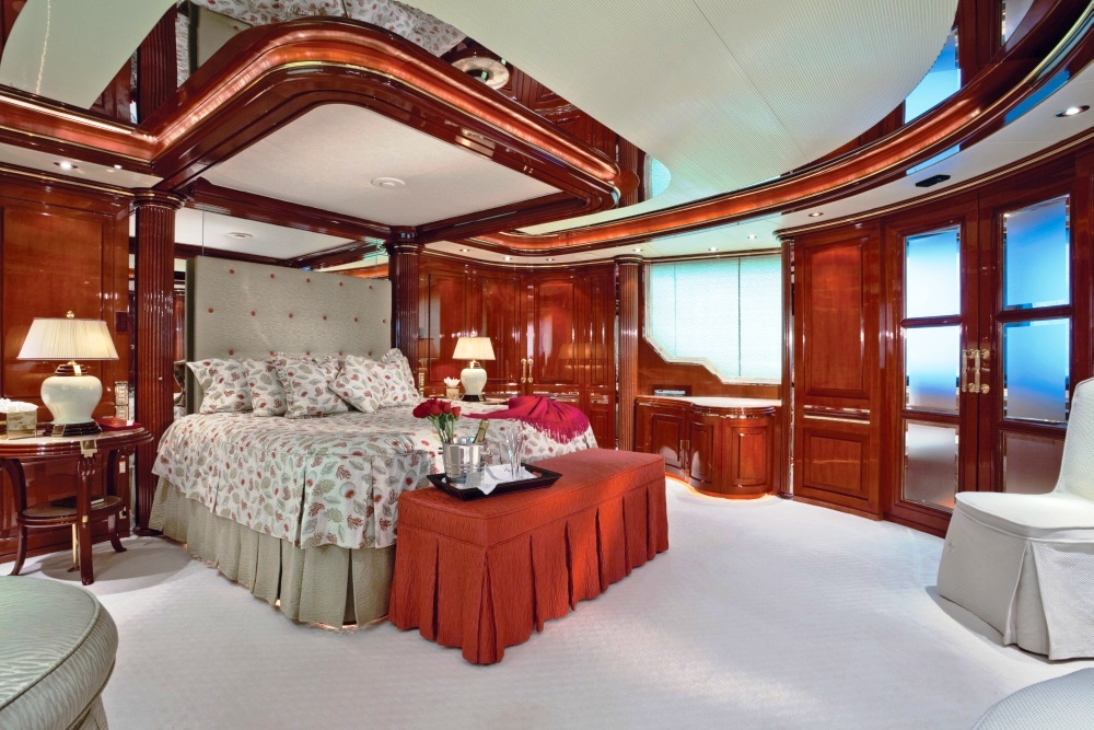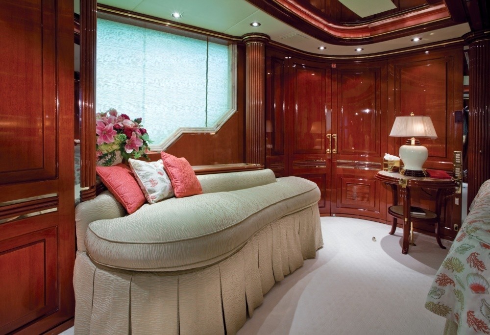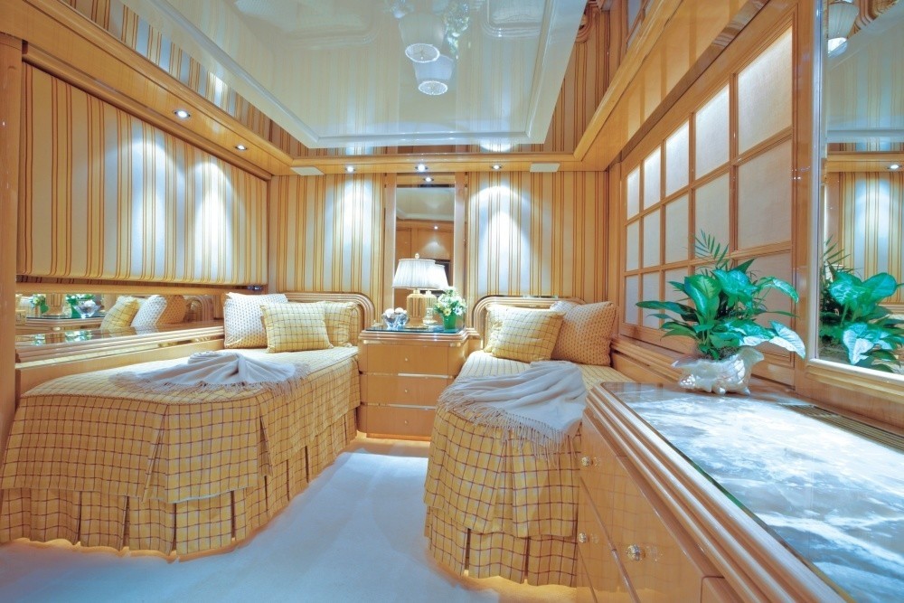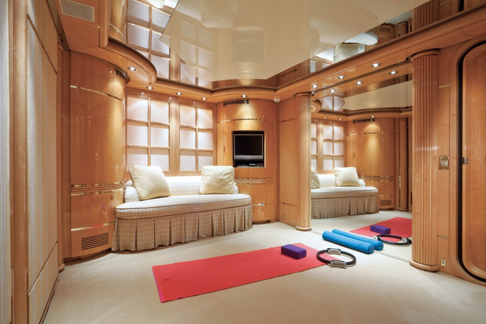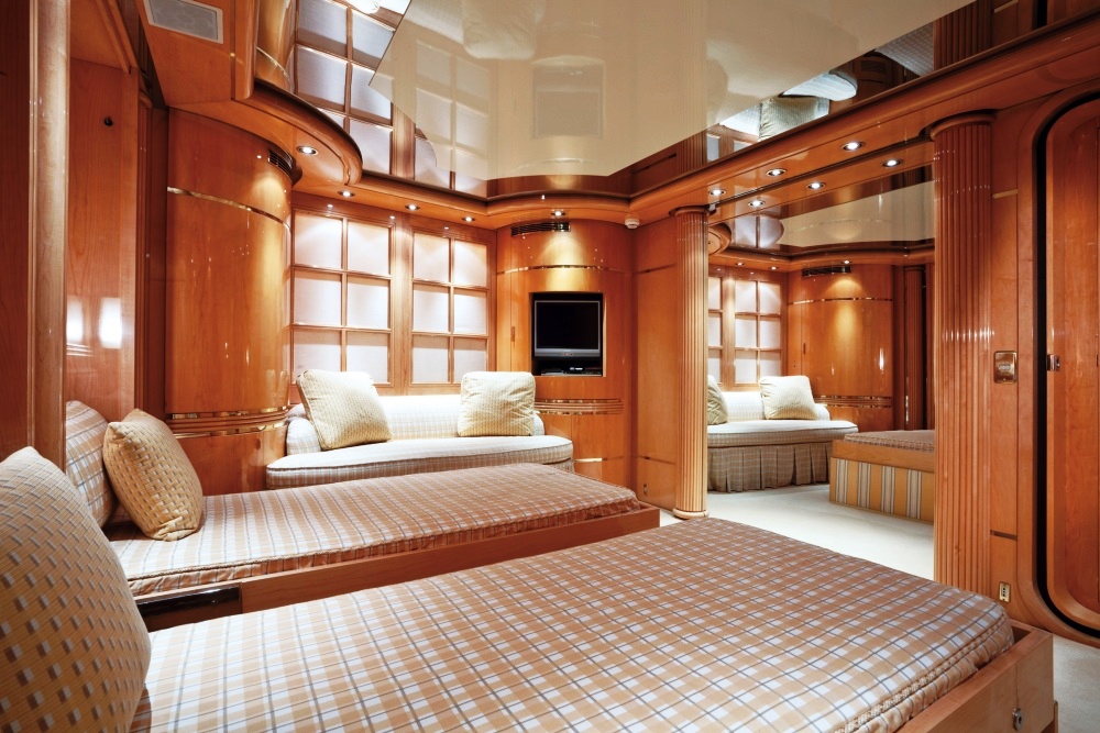 Luxury Motor Yacht AQUALIBRIUM (ex Lady Anne PB) accommodates up to 10 guests in comfort in 5 spacious fully en-suited staterooms. The cabins are detailed as follows: There is a Master Cabin with a King sized bed, a VIP stateroom with a queen sized bed, a double cabin located to starboard and a twin cabin on the port side of the yacht. There is a 5th cabin that has 2 pullman beds that can be stowed and used as an exercise area if not in use. The luxury yacht’s crew are accommodated separately.