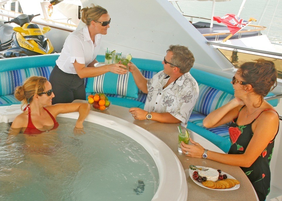 Onboard you will be pampered with attention to every detail from the professional crew of eight as you relax in elegant surroundings. QUEEN D could almost feel like 'home' with large oversized cabins and furnishings imported from London. Whether you're looking for solitude and relaxation, or a little excitement, the professional crew of 8 will take care of everything onboard.