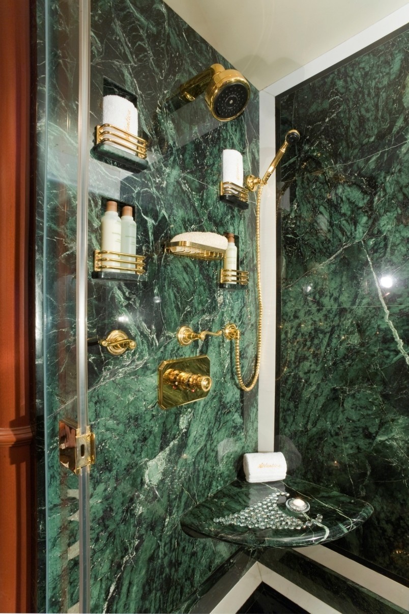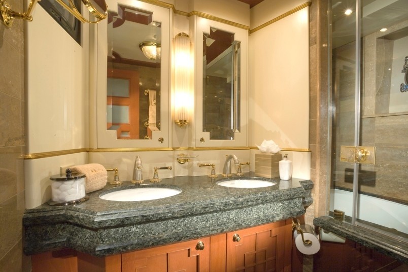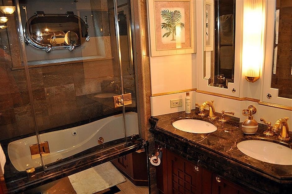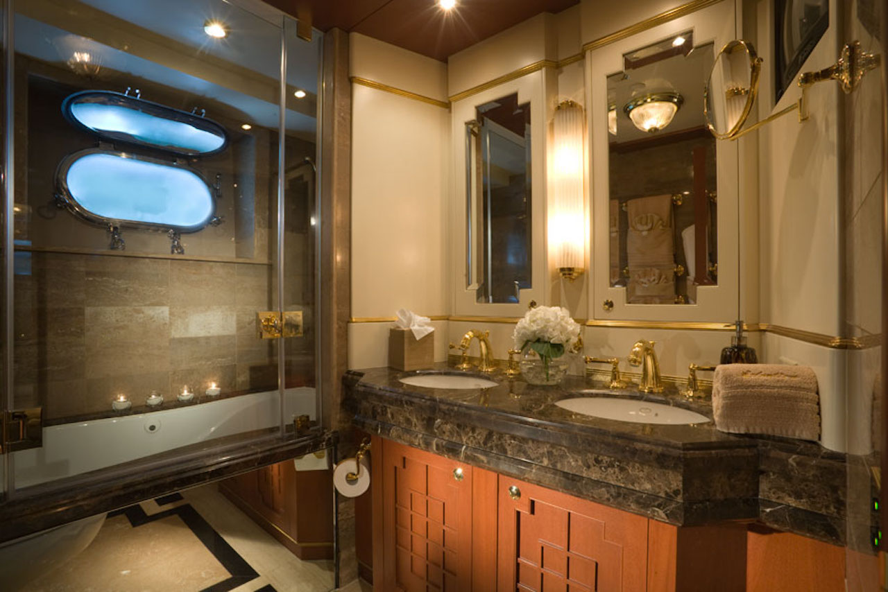 Motor Yacht QUEEN D offers spacious and comfortable accommodation for 10-12 guests in 5 cabins. The master suite is located amidships and boasts a king sized berth, a small library, large walk-in closet, a complete entertainment system and a luxurious ensuite bathroom with a Spa Pool tub and his and her toilets and steam and rain showers. The further guest cabins including three with queens sized berths and one with twin berths. All of these cabins all have high-quality cedar closets, entertainment systems and private ensuite bathrooms with two of the queen cabins benefiting from a Spa Pool bathtub.