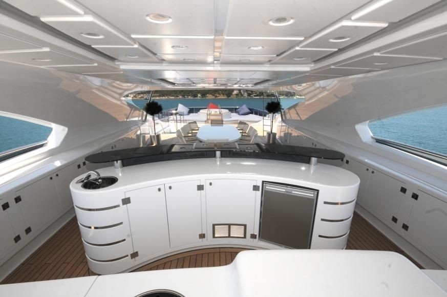 Built in wooden lamination epoxy, the Mengi-Yay superyacht Azra is powered by twin Caterpillar C32 diesels, reaching a maximum speed of 19 knots and a cruising speed of 14 knots. RINA classed, Azra features a beam of 8.2m (26'90'') and a maximum draught of 2.78m (9'12'').