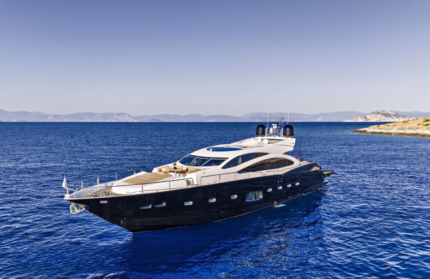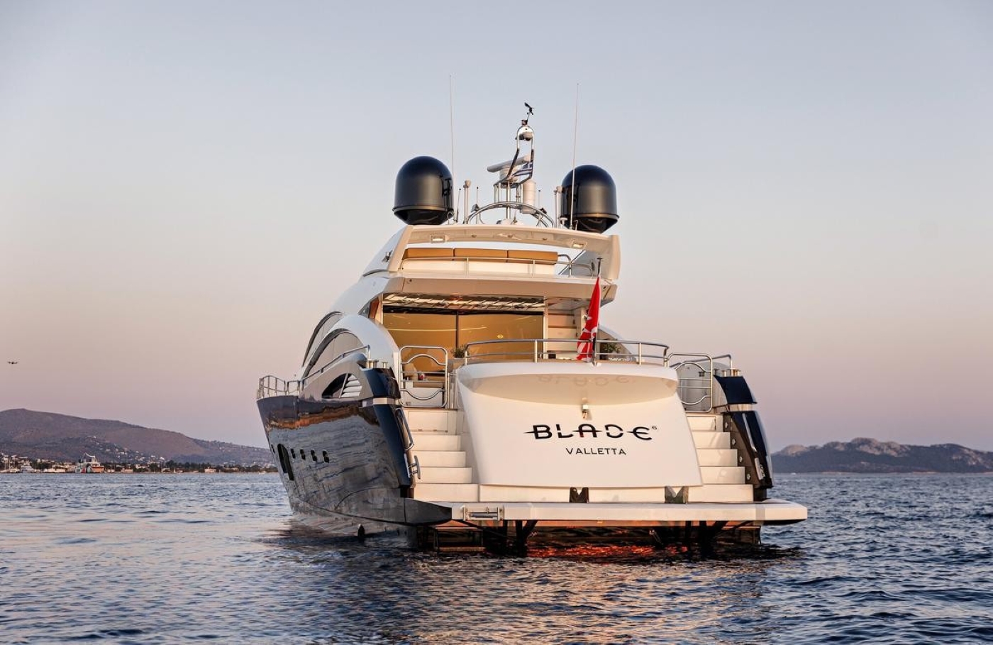 Well renowned Sunseeker launched the Predator performance yacht BLADE 6 (Ex Baltzar) in 2009. Her sleek dark GRP semi displaced hull is powered by 2 MTU 2400HP engines, capable of cruising at 30 knots and reaching top speeds of 33 knots. M/Y BLADE 6 accommodates up to 8 guests in 4 en-suite cabins, making her the ideal choice for families and groups of friends to enjoy a spectacular Mediterranean charter.