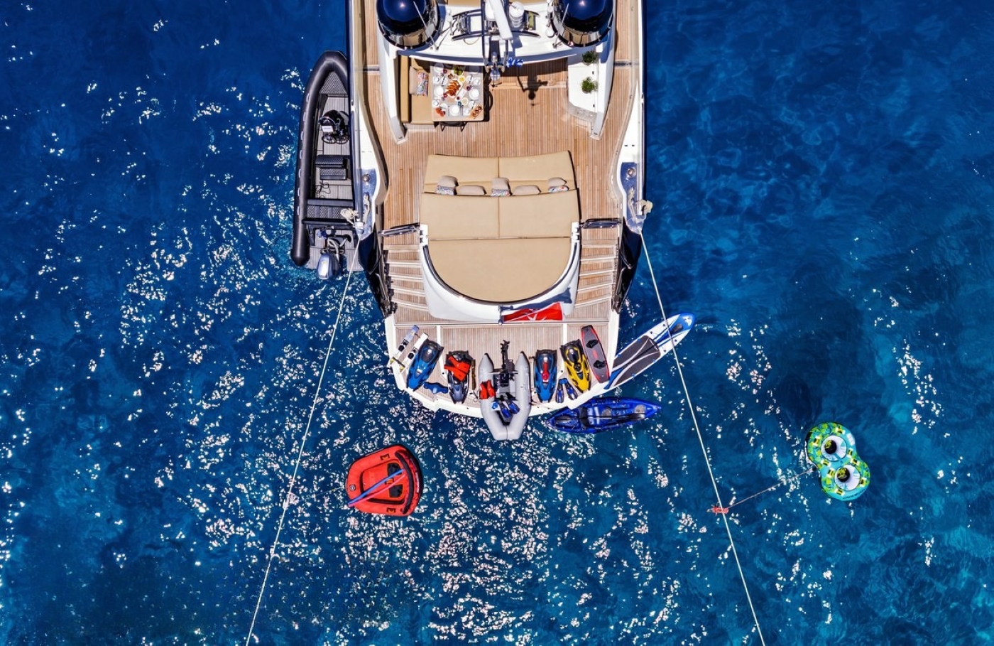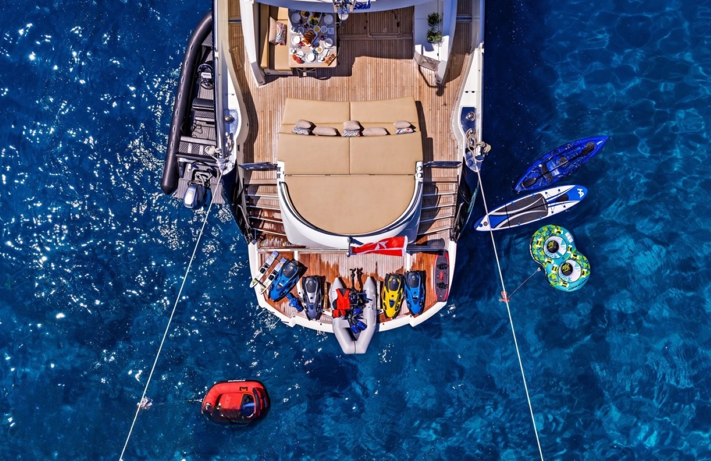 Tender & Toys ~VIPER rib Tender 5,2m with an 80HP outboard engine ~4 x iAqua Seadart Max+ (SEABOB EQUIVALENT) ~1 X JOBE Infinity Seascooter Pro ~1 x Kayak (1-Seater) ~2 x Stand-up paddleboards ~1 x Banana (2-Seater) ~1 x Inflatable sofa (2-Seater) ~1 x Donut (2-seater) ~1 x set of waterskis (Adult) ~1 x set of waterskis (Children) ~1 x Wakeboard (small size) ~Snorkeling equipment