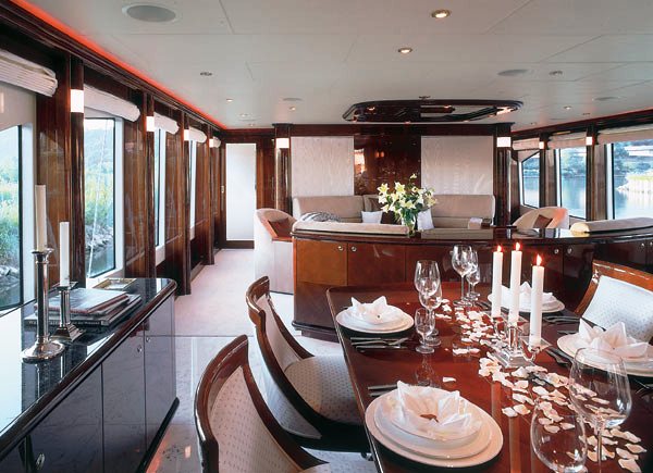 Luxury Motor Yacht C'EST LA VIE has all the latest technical and communication equipment including SAT TV and phones, PABX communication, internet connection, office and fax, big screen cinema, DVD and TV's throughout. All cabins are equipped with TV's and surround sound stereos. The yacht is also equipped SeaDoo 4m RIB with 50hp engine and a Yamaha Waverunner