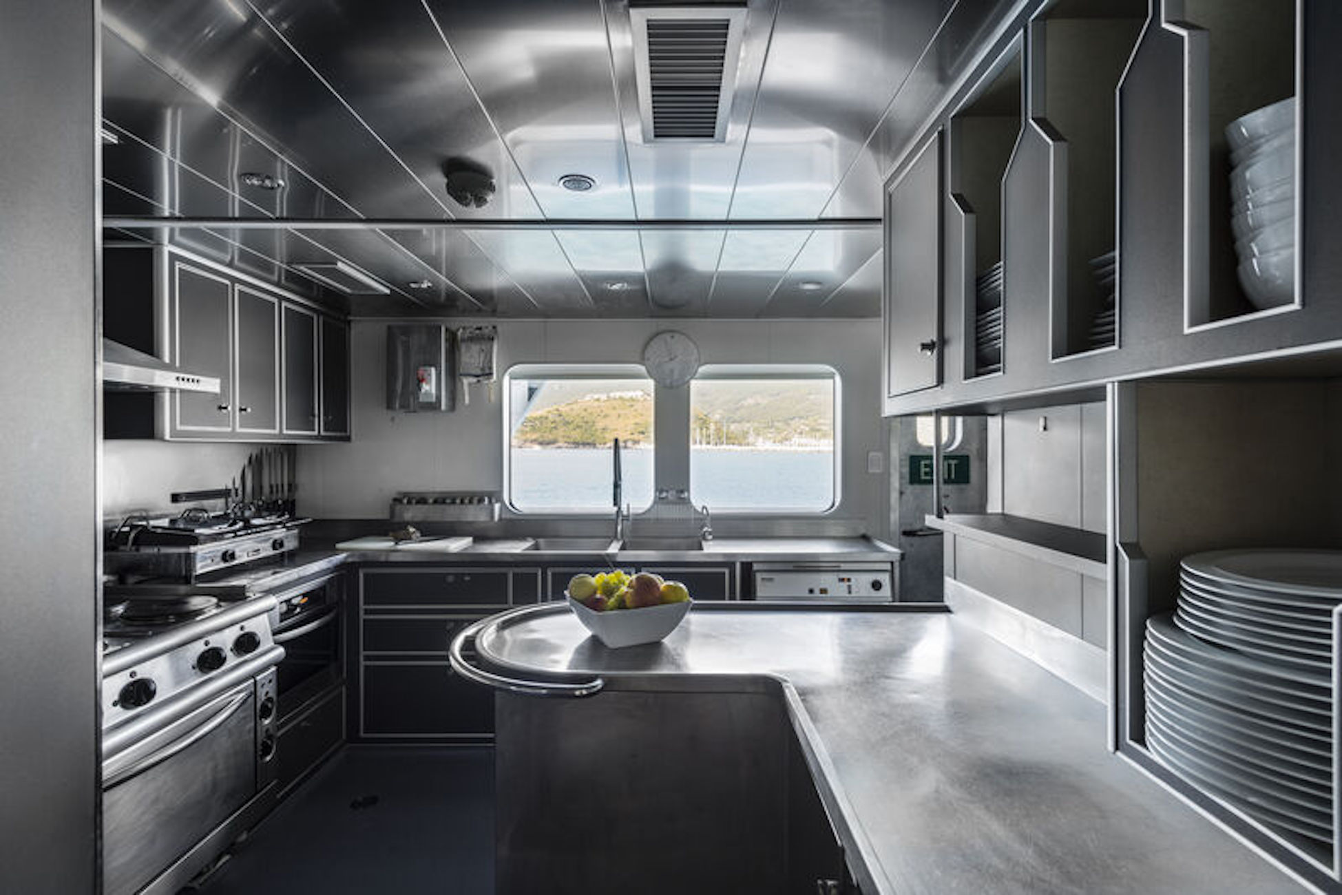 OUR WAY has an extra large aft boarding platform enabling comfortable access to tenders and easy dive preparation. There is also a dive locker and compressor.