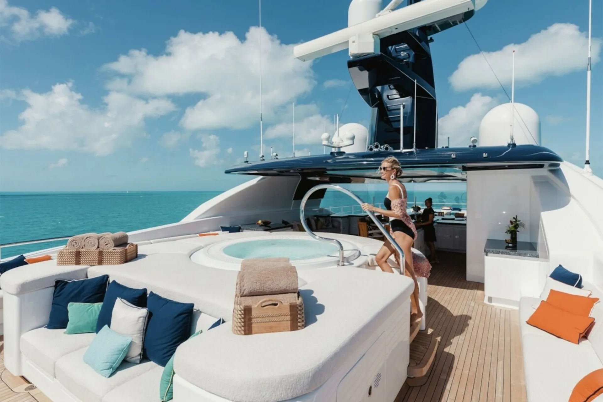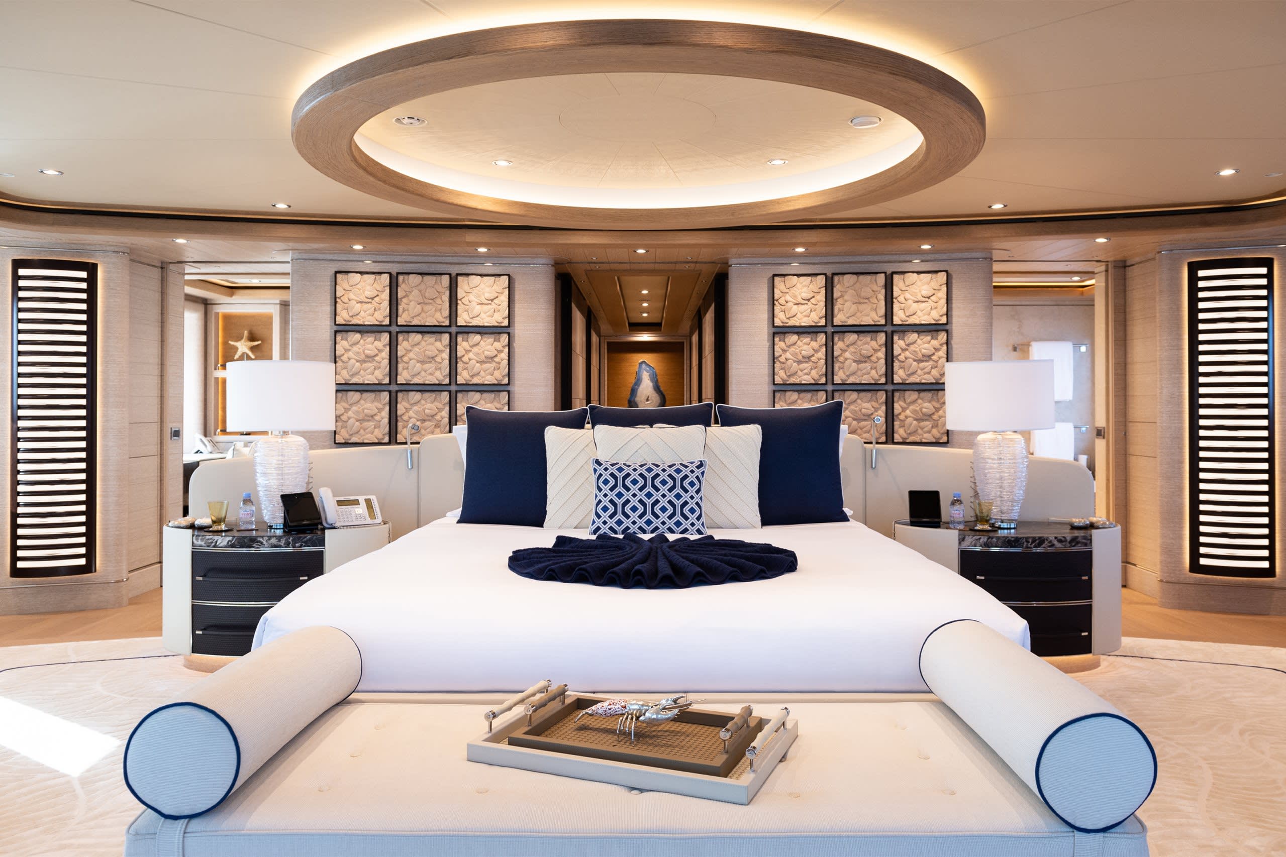 STARBURST IV can sleep up to 12 guests in luxury and style. There are 8 beautifully appointed staterooms. These include a magnificent owner's suite with a private deck and fantastic panoramic views. The upper deck boasts a VIP cabin with a king-sized bed and an en suite bathroom with a bath and shower. The main feature of this stateroom is the doors that open up to enjoy a fresh breeze. Further down, on the main deck, there are four king-bedded staterooms, two of which are convertible from twins to doubles and vice versa. All cabins are fitted with en suite bathrooms with a bath and shower.