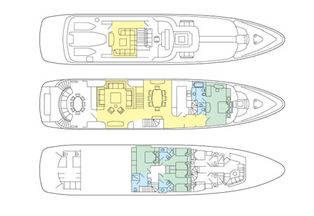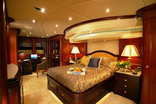 The accommodation on Motor Yacht Crystal Lady consists of the Owner's stateroom with en suite bathroom and Spa Pool, a VIP double cabin and two guest suites all with en suite shower rooms.