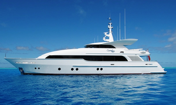 Luxury Motor Yacht CRYSTAL LADY is 35m and was designed by Sam Sorgiovanni and built by Warren Yachts in Australia. She was launched in 2002 as one of the most luxurious yachts.