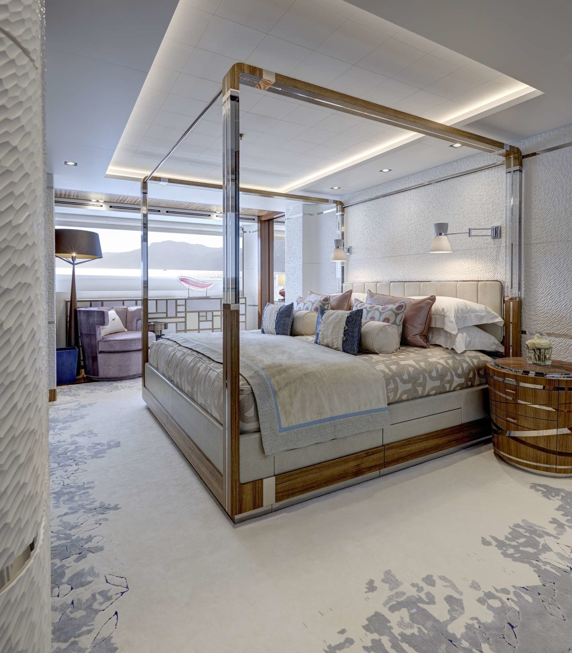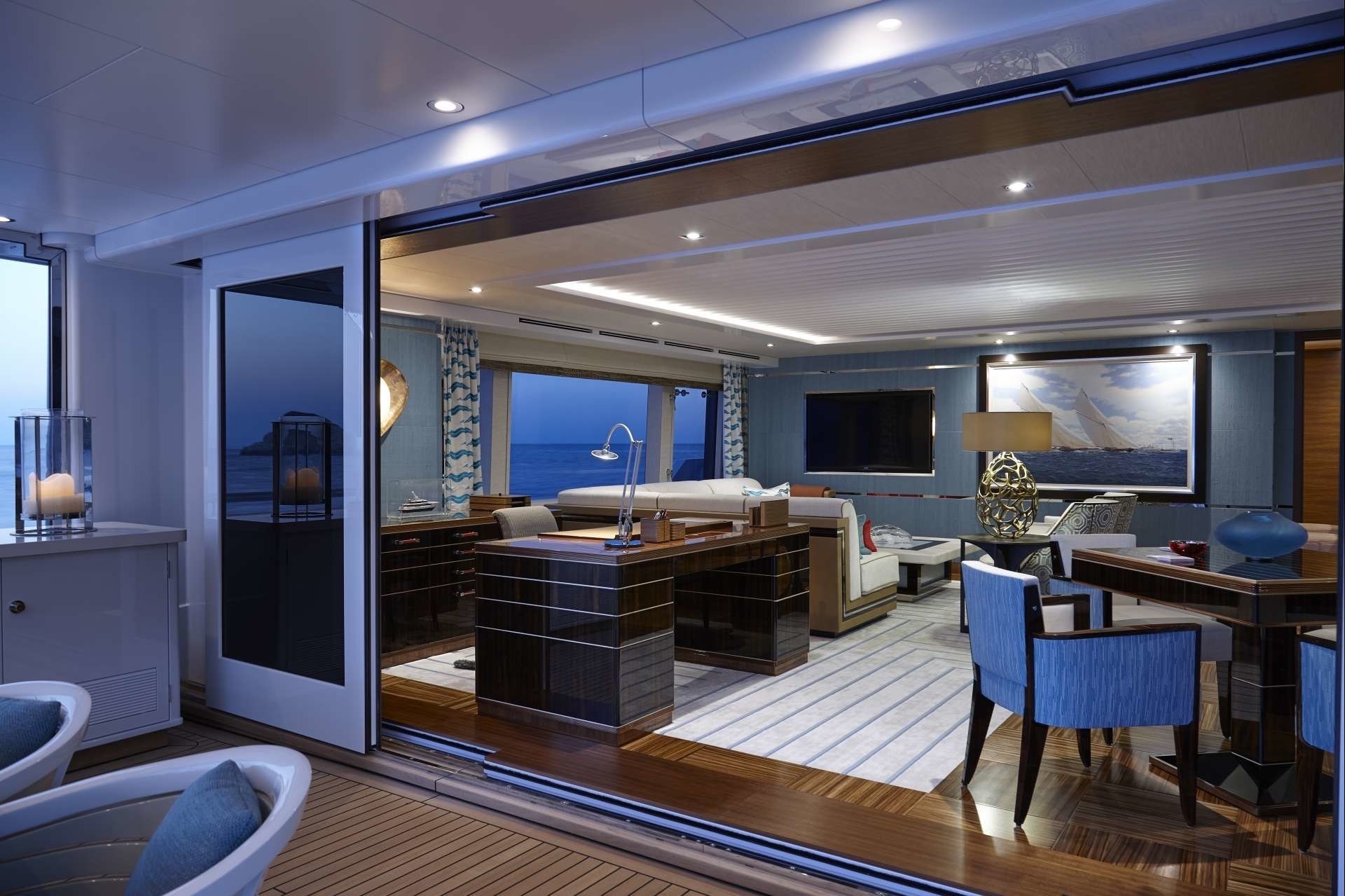 Superbly designed by world-renowned Bannenberg & Rowell Design, the striking interiors of Feadship super yacht MOON SAND can sleep up to 8 guests in utmost in luxury, providing them with 4 lovely cabins. These include a huge Owner’s suite with a beautiful study, double bathroom and walk in dressing room, in addition to three large guest staterooms. Two of these are easily convertible into one large stateroom with separate seating and there is also one large full-beam VIP stateroom positioned forward.