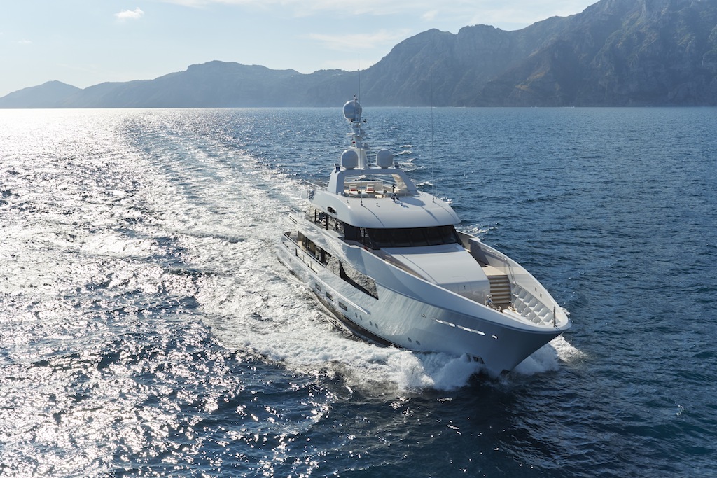 Feadship luxury yacht MOON SAND (hull 690) is run by twin powerful Caterpillar C32 896 kW @ 1800 rpm diesel engines.