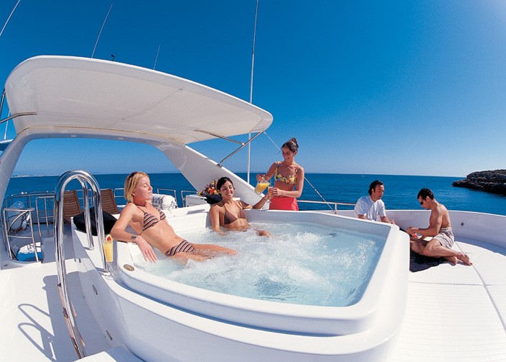 Enjoy breathtaking views from the elegant sundeck, which is more than ten metres above the waterline. Lie back and relax in the heated whirlpool. And if you want to soak up the sun, it takes no more than a few minutes to remove the protective bimini.