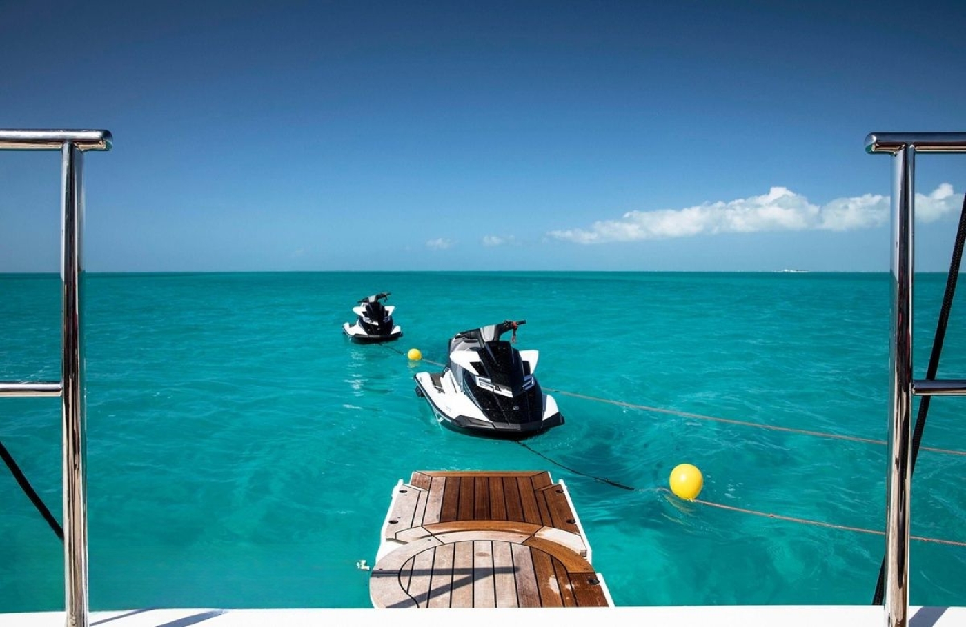 NOTABLE FEATURES for HOME: Contemporary interior decor ~ Light and spacious living areas ~ On deck master stateroom ~ Private gym ~ On deck Jacuzzi ~ Alfresco dining ~ Excellent array of water toys ~ Large swim platform ~ Stabilizers ~ Wifi