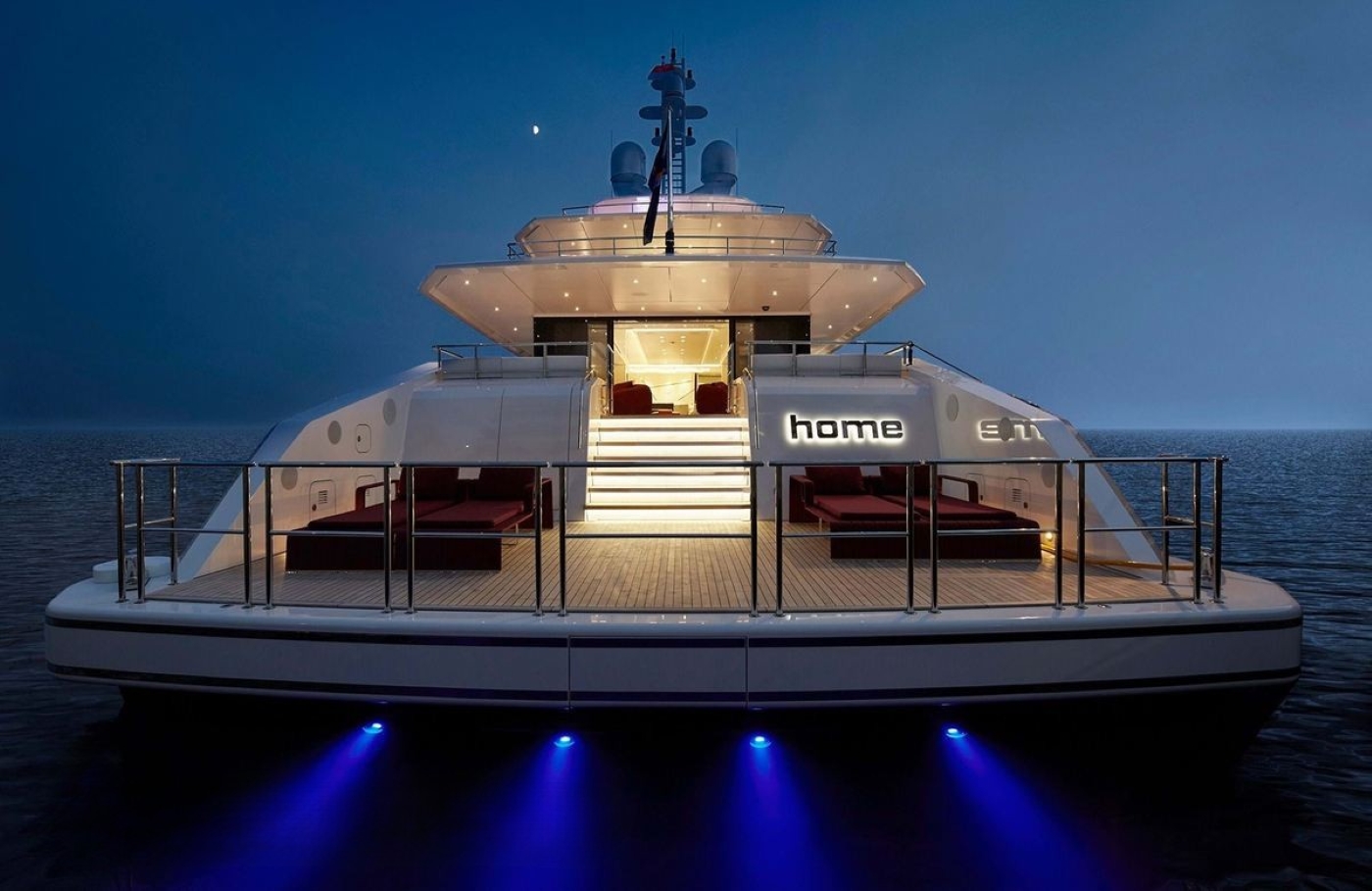 Motor yacht Home is powered by a pair of MTU 12V 2000 M61 Diesel-electric engines and can reach a top speed of 16.3 knots.