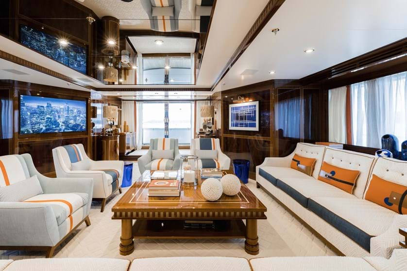 Superyacht KADIMO'S offers luxurious and comfortable accommodation in 6 lovely cabins, including a spacious Owner's suite, three double guest cabins, as well as two twin guest cabins. The vessel's attentive crew sleep in one Captain's cabin, one Chief Engineer's cabin, as well as 4 twin crew cabins.