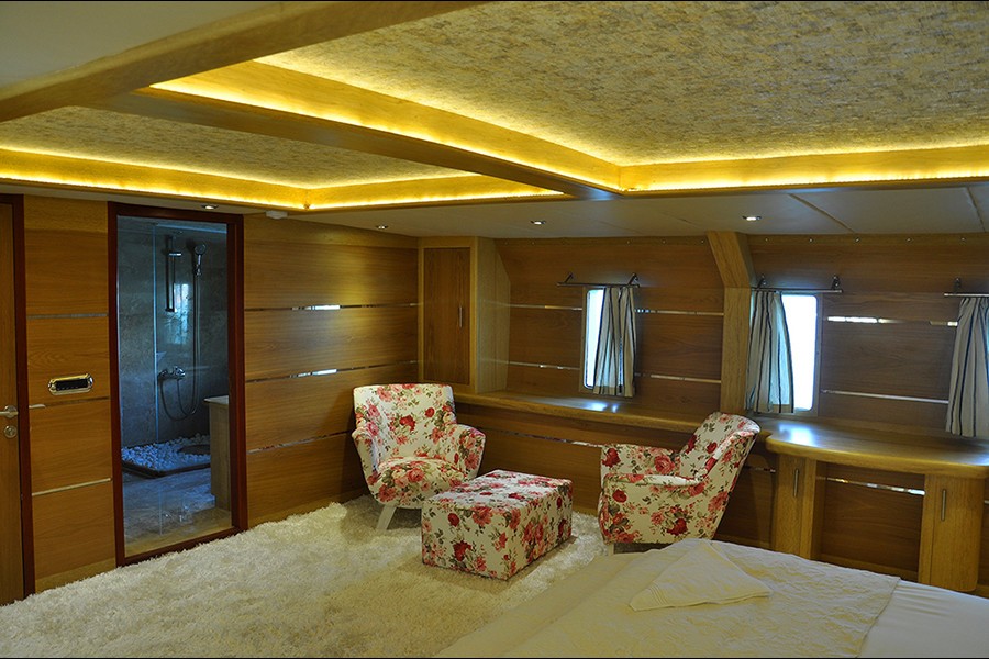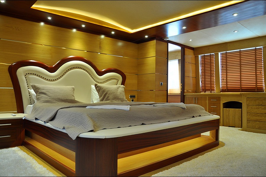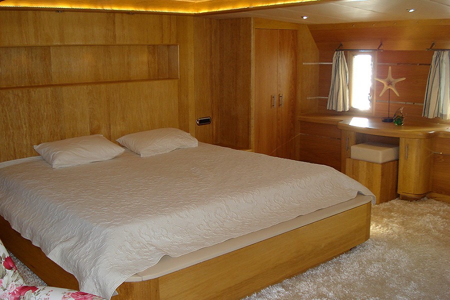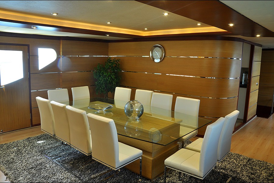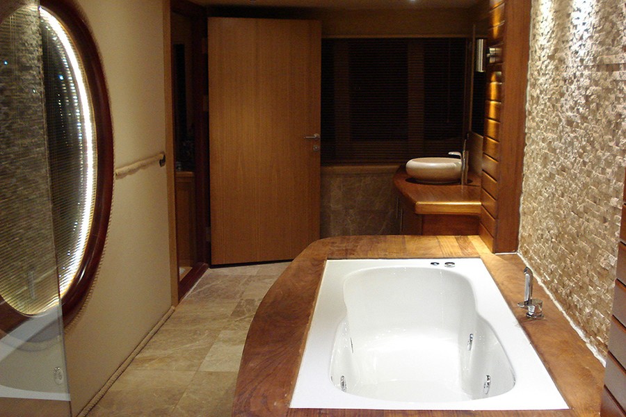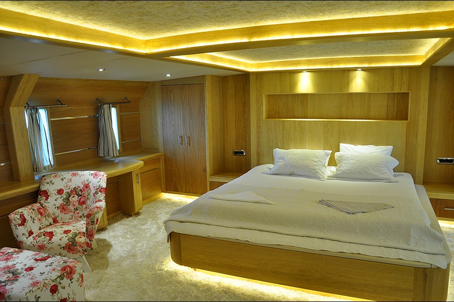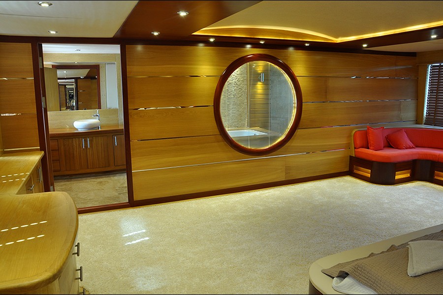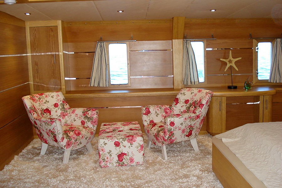 Her interior styling is quite exquisite with luxury seating and high-quality furnishings throughout. VETRO’s lavish leisure and entertainment facilities make her the ideal yacht for socializing with family and friends. She has a large living area with LCD TVn DVD and stereo music player, as well as enough space for eating and relaxing both indoors and out.