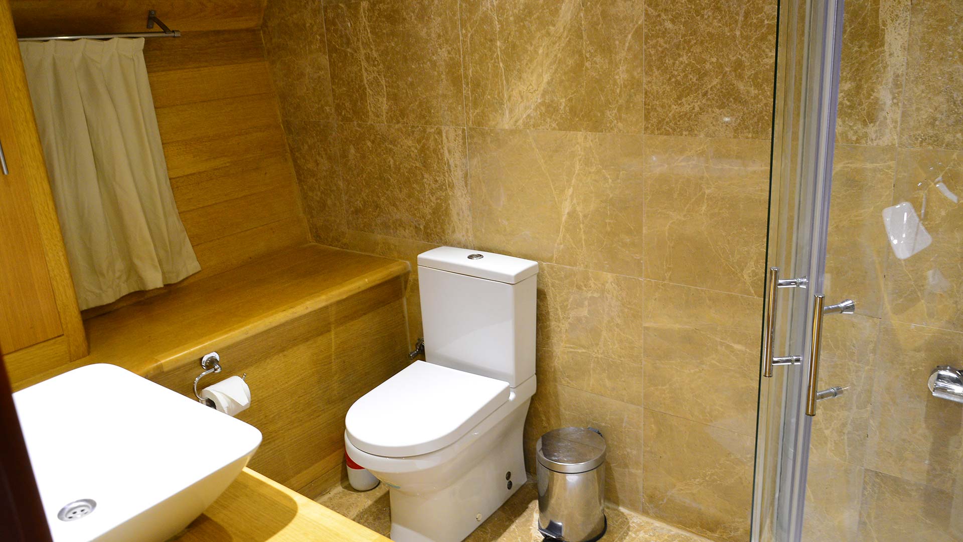 In between the cabins you will find a hall with a bar, a lounge with a dining table. There is also a comfortable seating area with modern and classic furnishings, ideal for entertaining.