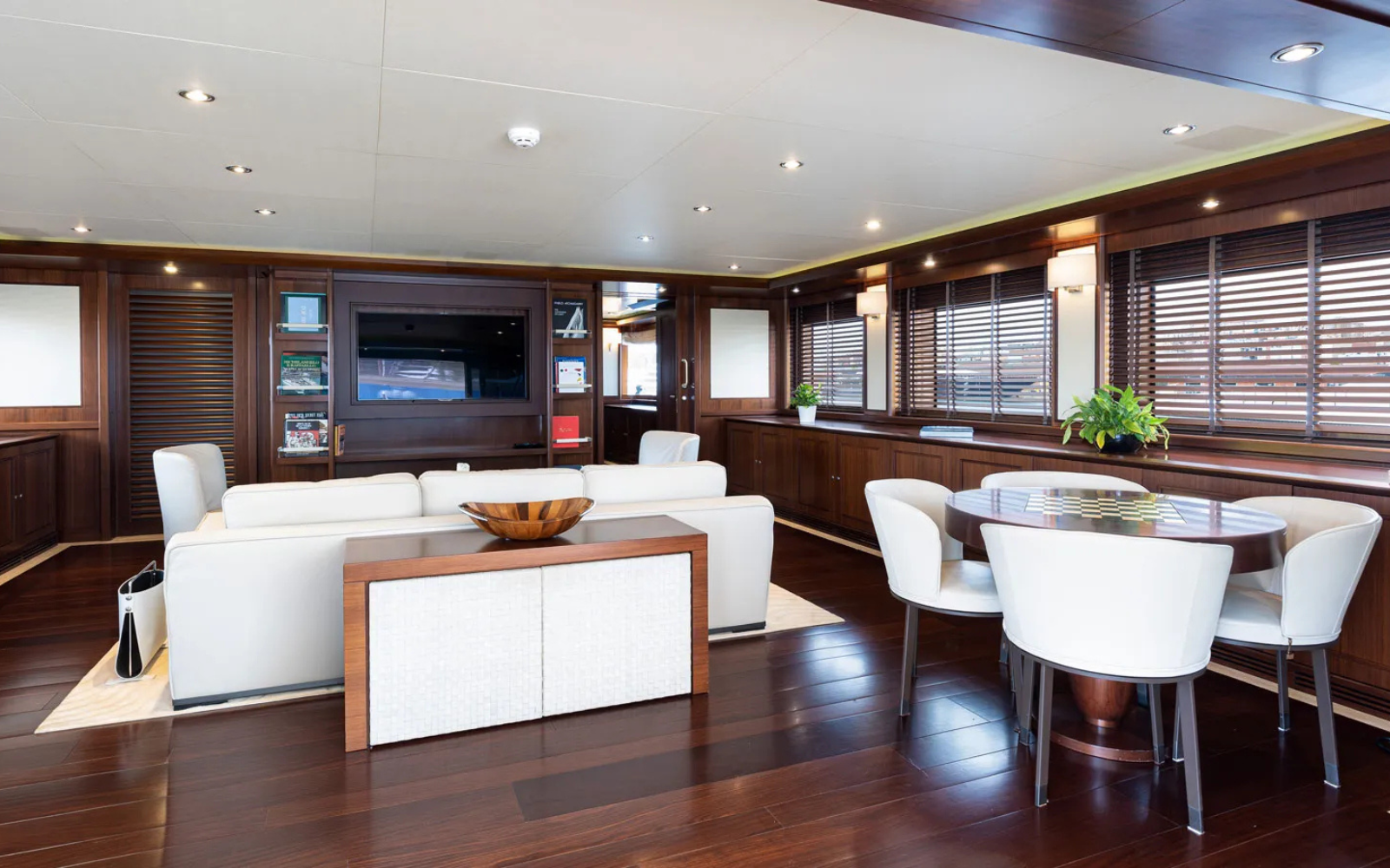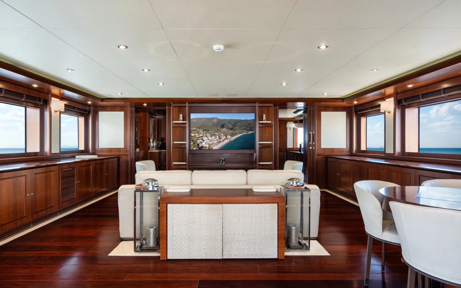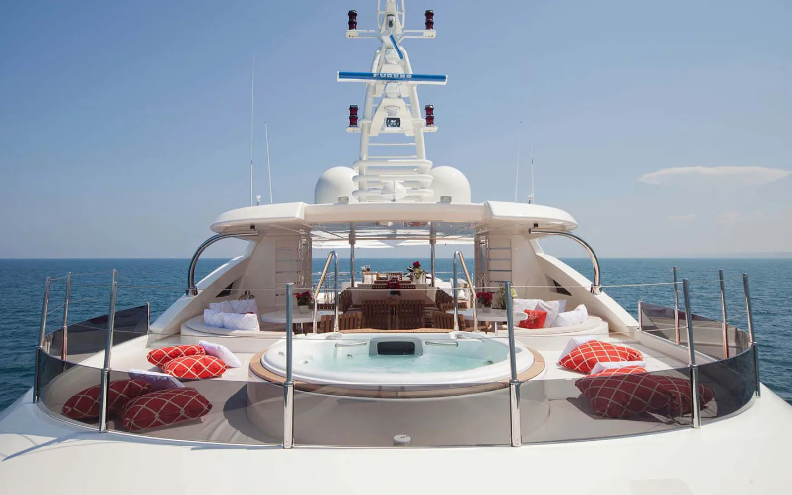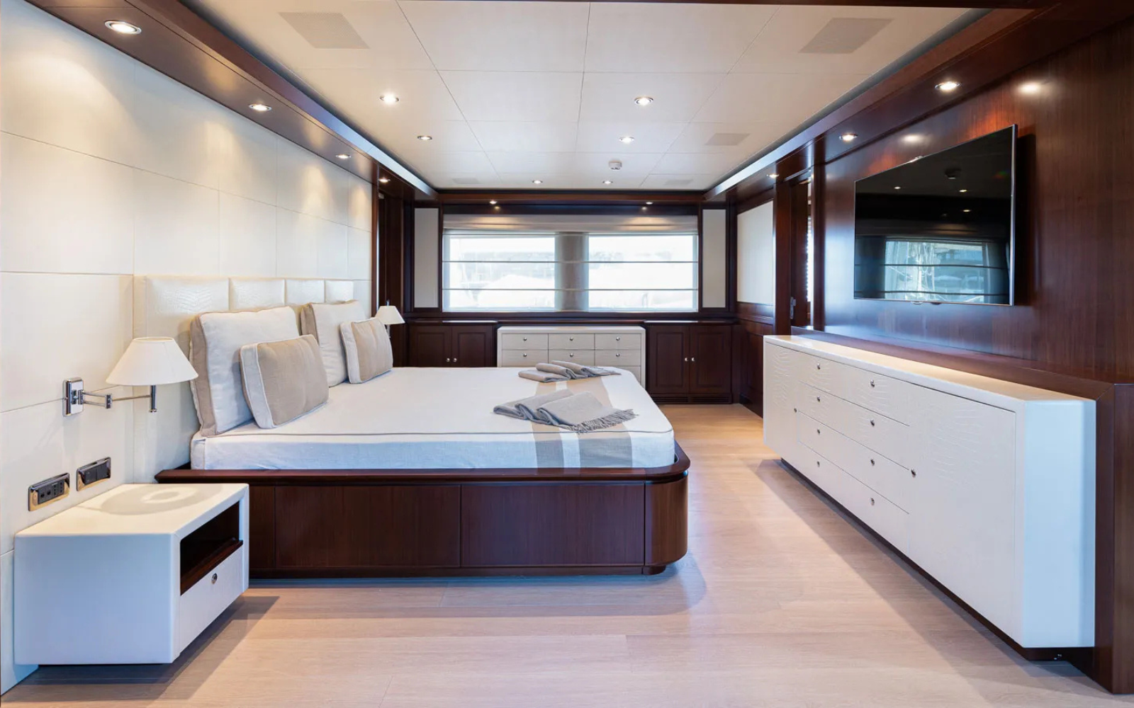 Top speed of 15 knots and a cruising speed of 13 knots is reached thanks to her twin Caterpillar C32-C engines. Her range is of 3,800 nautical miles at 11 knots of speed. Lady Genyr superyacht is perfectly capable of cruising across the ocean.