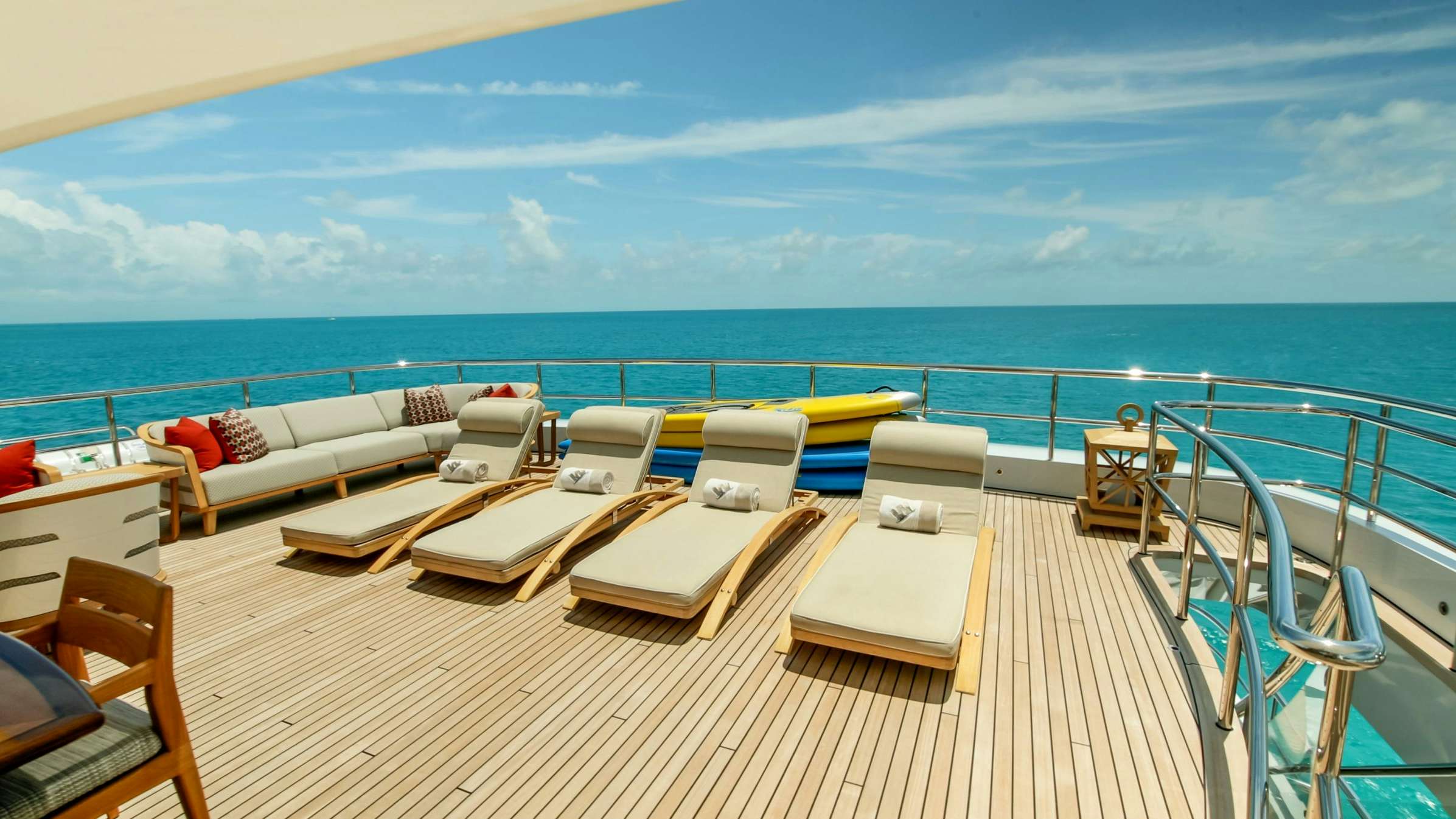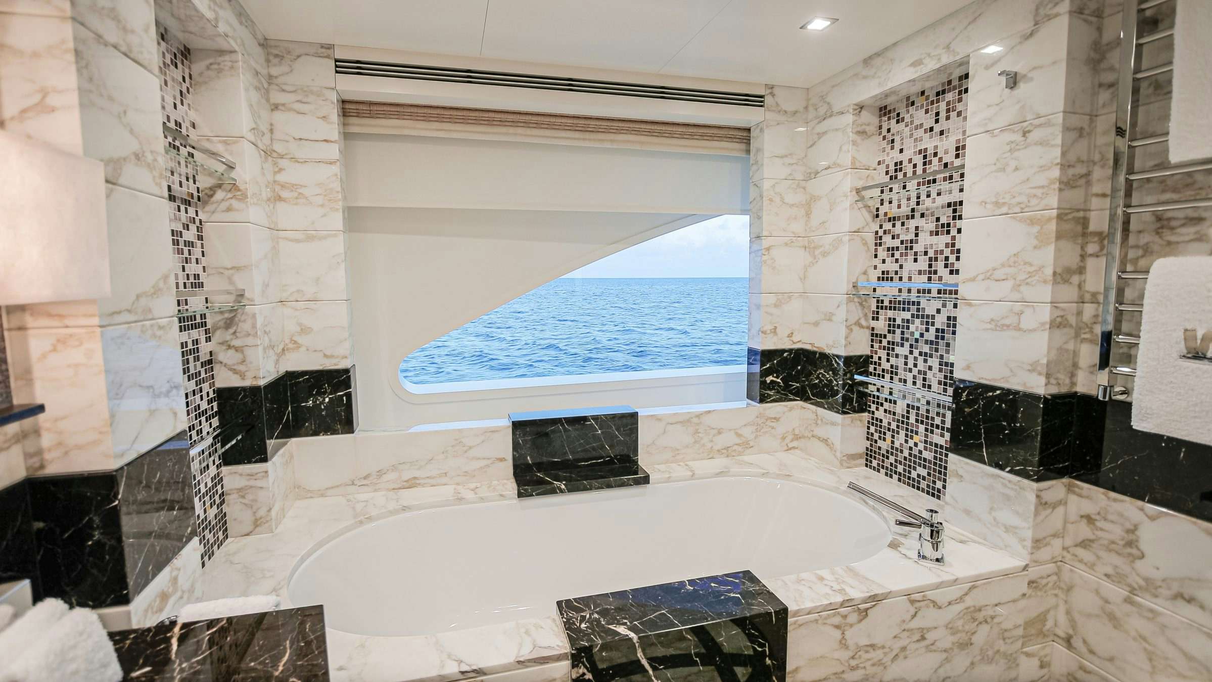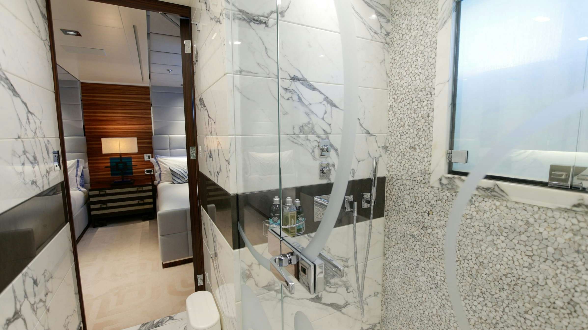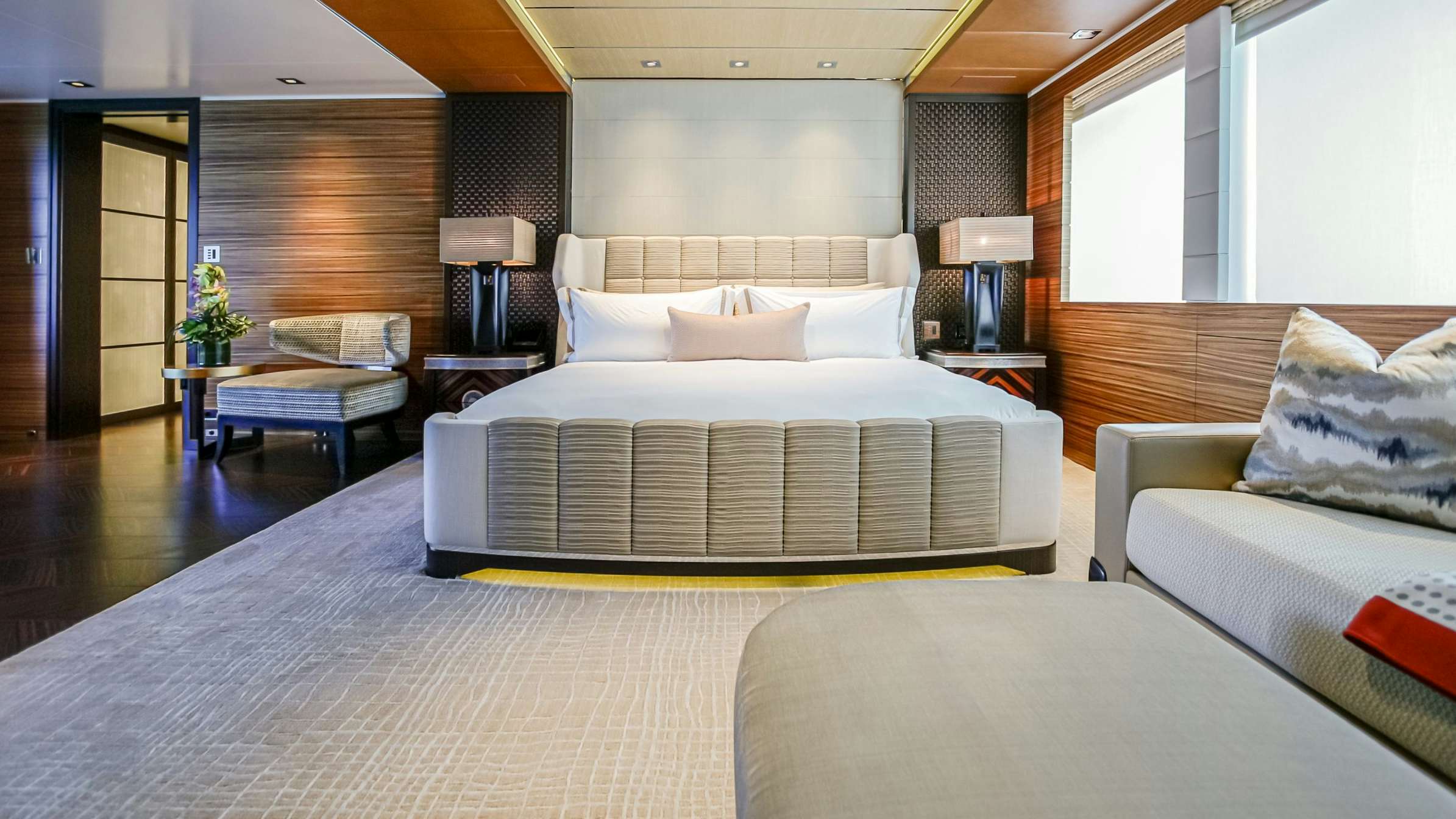Accommodation is provided in a spacious and magnificent Owner's stateroom complete with a private balcony and fitted with separate bathroom and dressing room. Lower Guest accommodation offers two large VIP Cabins w/ King beds aft and then two Twin Convertible cabins up forward