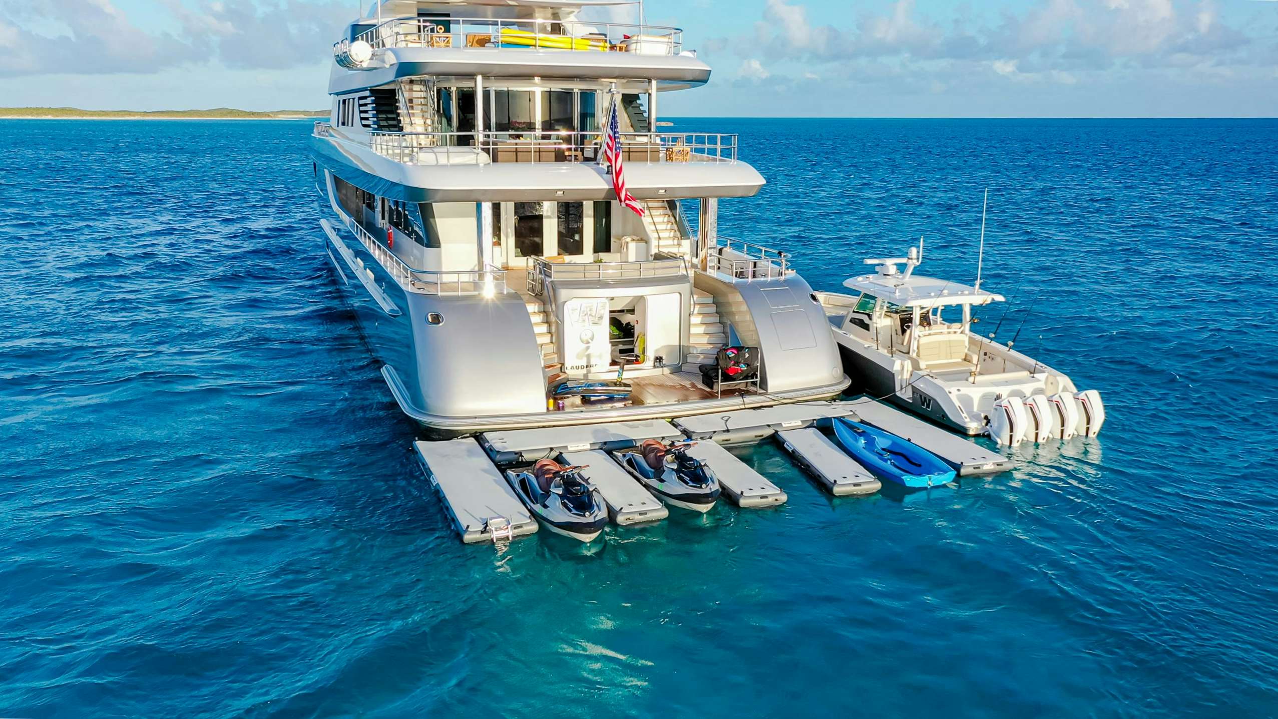 Tenders & Toys: 38' Targa Protector 2022 w/ twin 450R's 18’ (5.4m) Rescue tender Giant waterslide 2x Fliteboard 2x three-person GTX Limited Sea-Doo Jet skis (2020) 2x two-person hobie pedal kayak 2x stand up Paddle Board 2x seabobs F5S Snorkel gear, adults and children Wakeboard Beach Toys Fishing Equipment ,Beach toys Aqua-Banas - oversized inflatable party cabana SCUBA – RENDEZVOUS DIVING ONLY ///Gym equipment: ~1x Peloton Bike