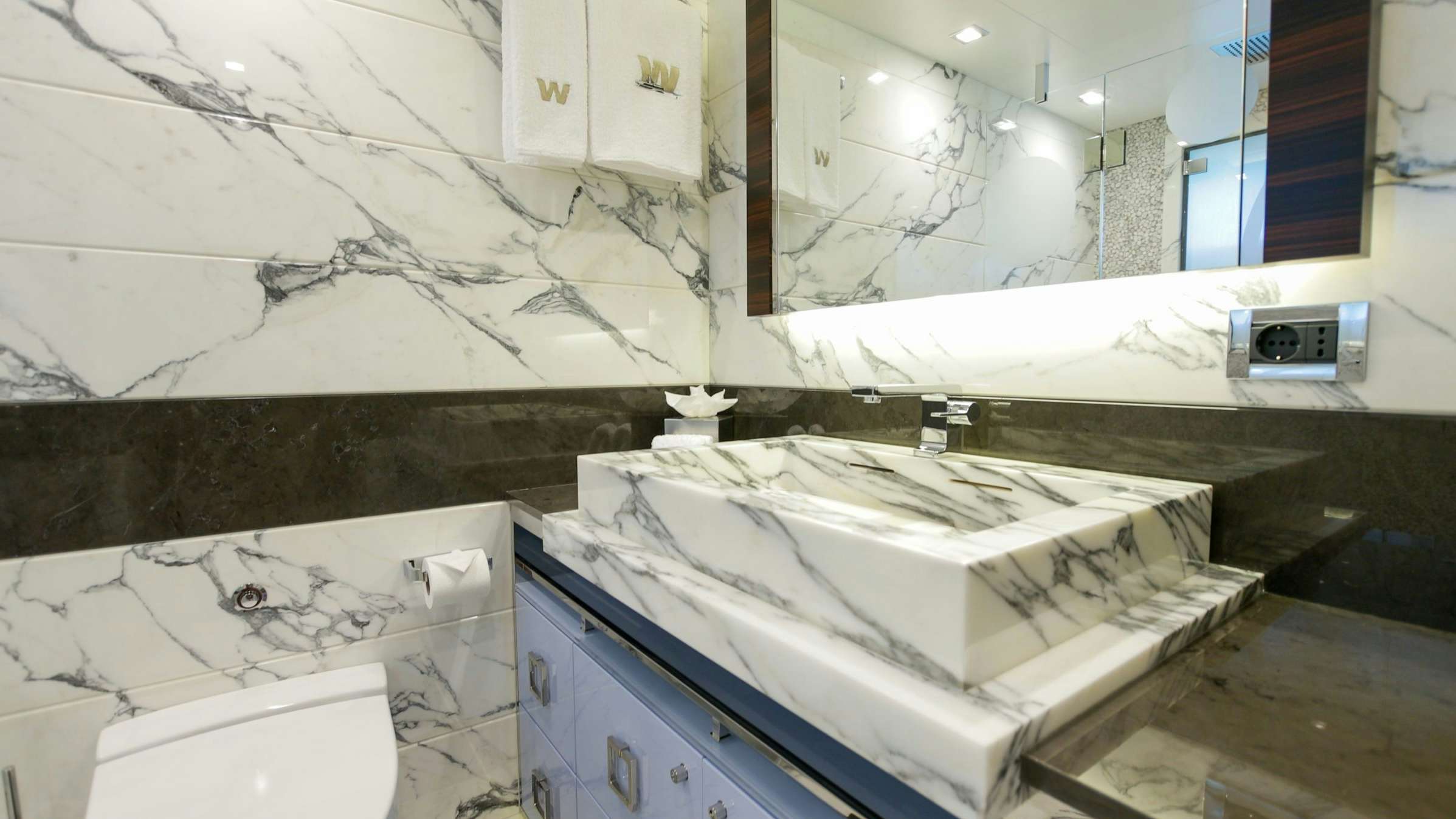 NOTABLE FEATURES OF 'W': ~ sober modern luxury interiors ~ great deck spaces ~ plenty of areas to unwind ~ alfresco dining options ~ Jacuzzi ~ main deck master suite ~ at anchor stabilisers ~ underway stabilisers ~ gym equipment ~ elevator/lift ~ air-conditioning ~ WiFi