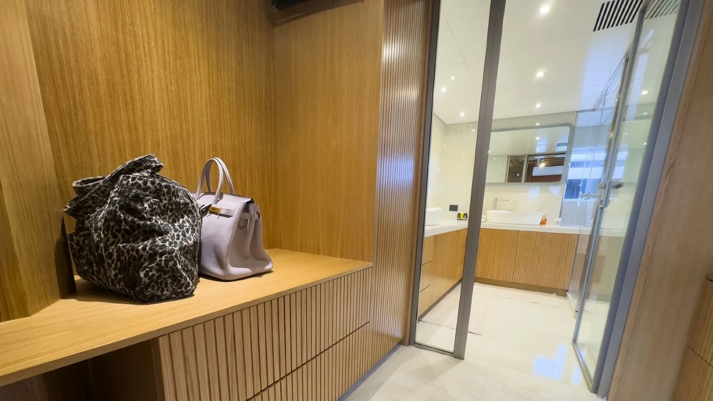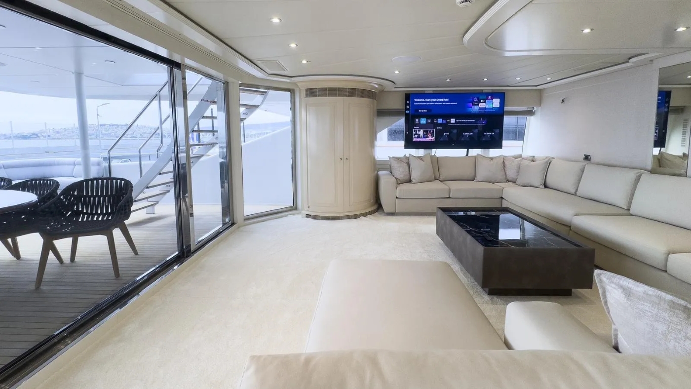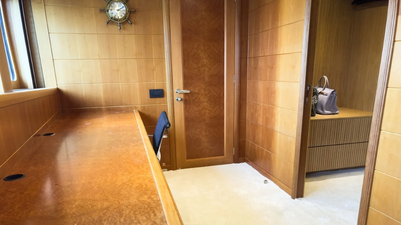 BENIK I’s master cabin is on the upper deck and it is very spacious offering a private deck and study. On the main deck forward, there is a Saloon with a big television and a selection of games, DVDs, etc.