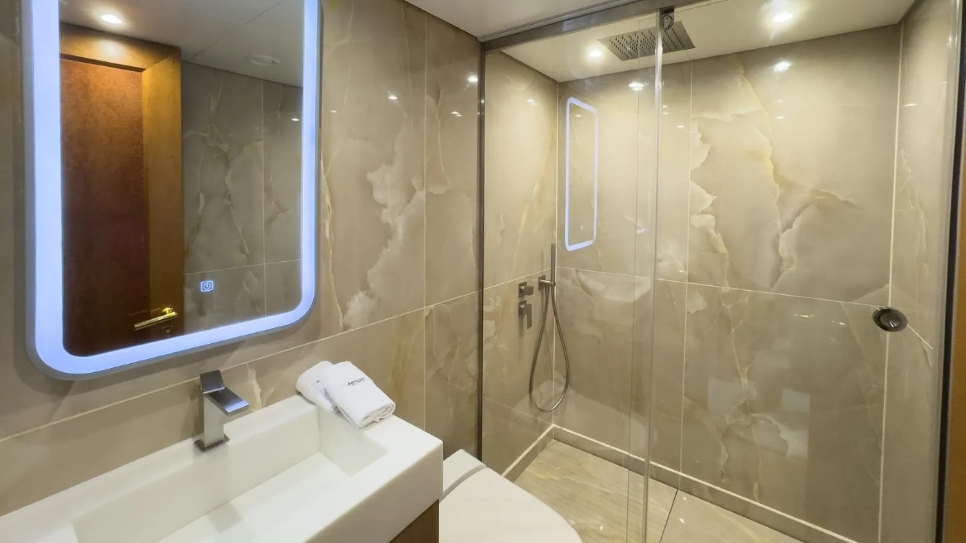 ~ One Master cabin on main deck (bed dimensions 200X200 cm) ~ 2 VIP cabins (beds dimensions 200X180 cm) ~ 2 double cabins, one of them has 2 pullman beds (beds dimensions 200X165 cm and pullman size 200X80 cm) ~ 2 twin cabins (beds dimensions 200X80 cm) ~ All seven cabins with ensuite bathrooms