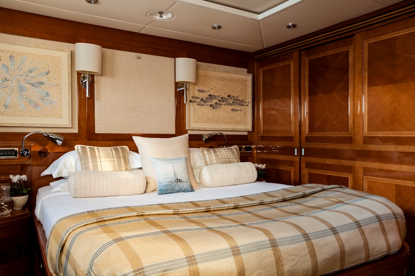 Luxury Motor Yacht METSUYAN IV offers the luxury yacht accommodation for 10 guests in 5 cabins including a master suite with a king sized bed, two queen cabins and two twin cabins. All cabins have private ensuite bathrooms and entertainment facilities.
