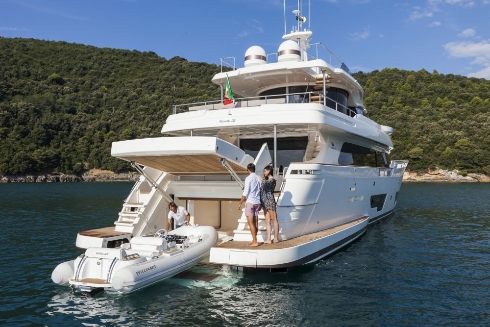 Ferretti Custom Line luxury yacht Navetta 28 is fitted with twin MAN V8 1,200 mhp diesel engines that allow her to reach a maximum speed of 16 knots and a cruising speed of 13,5 knots.
