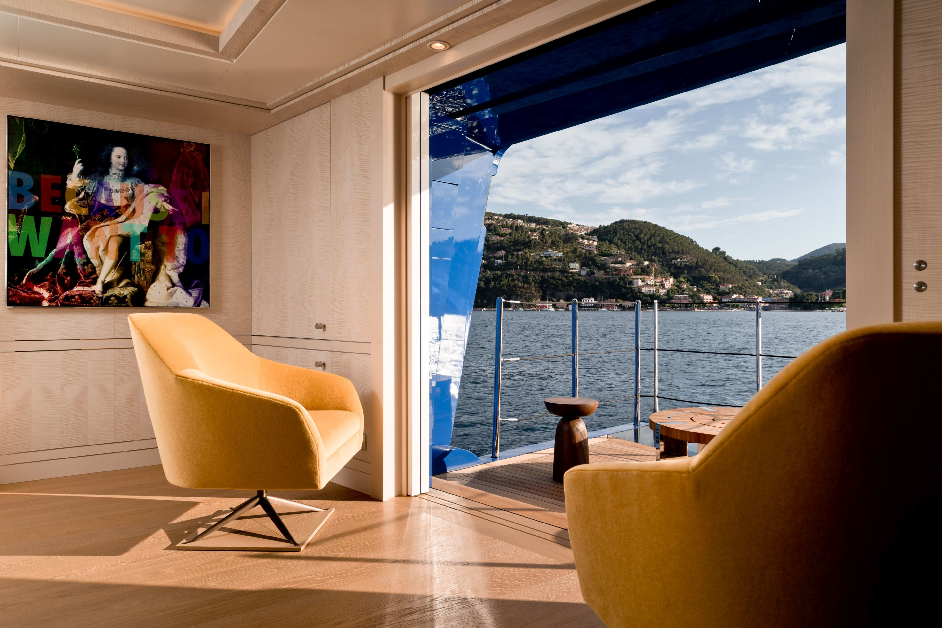 Twelve guests can be accommodated in six suites including a vast master stateroom with interconnecting bedroom, ensuite with full bathtub and dressing room. The suite also boasts its own private terrace to be enjoyed by primary charter guests. The additional five double staterooms all offer great space and ensuite bathrooms while there is a dedicated kids cabin with four cool bunks.