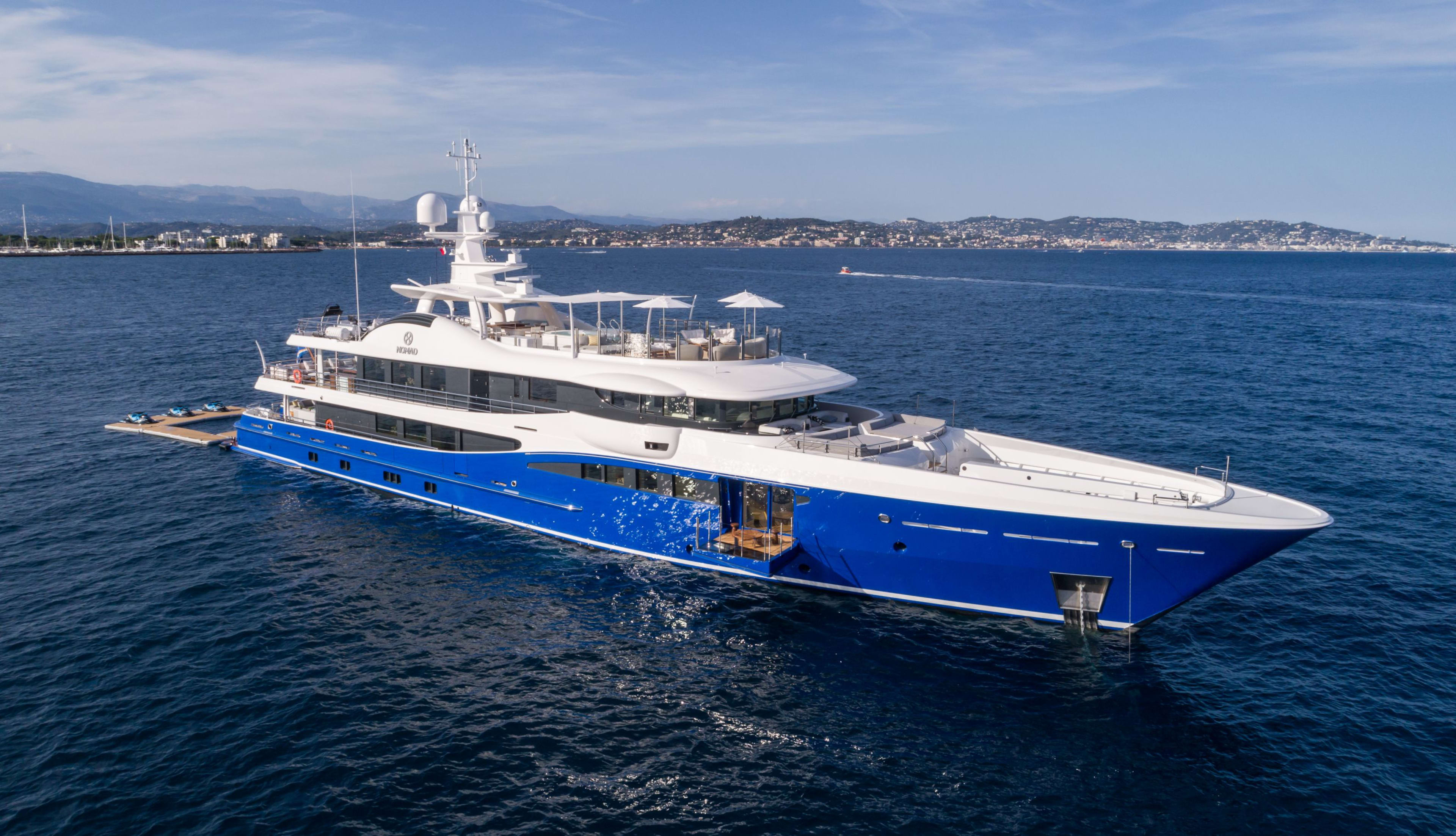 Launched in 2019, the 55.00 m (180' 5") motor yacht NOMAD was built by AMELS and designed by Tim Heywood. She features an impressive blue-cloured hull and grey superstructure. Built for her owner to create a comfortable and reliable ocean cruising experience, NOMAD features vast living spaces that were designed by studio Bonesteel Trout Hall. Accommodation is provided for 12 guests in 6 cabins and 13 crew members.