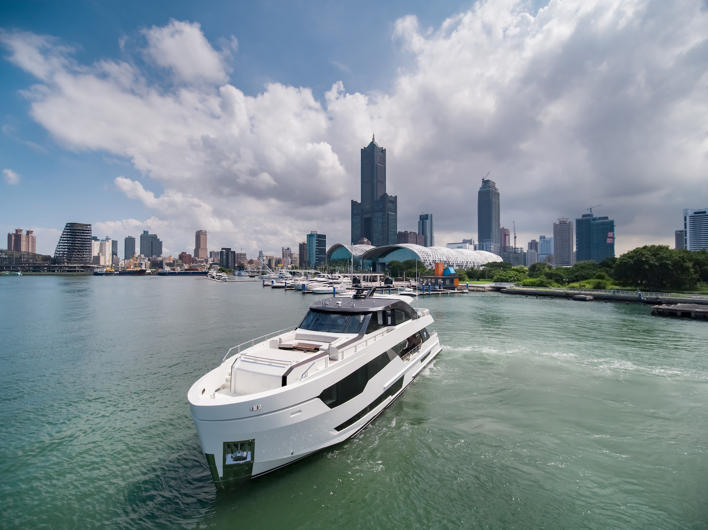 With launch in 2018, motor yacht OA90r is a 28.17m/90' luxury yacht from the Ocean Alexander 90 luxury yacht series. Evan K Marshall designed the naval architecture and interior styling of the yacht. Accommodation is offered for 8-10 guests in four cabins.