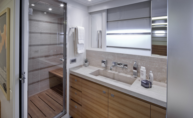 Cdm superyacht Percheron can sleep her guests in 4 beautiful and comfortable staterooms, all ensuite. She also offers two day heads, one of which is situated on the main deck, while another one on the upper deck.