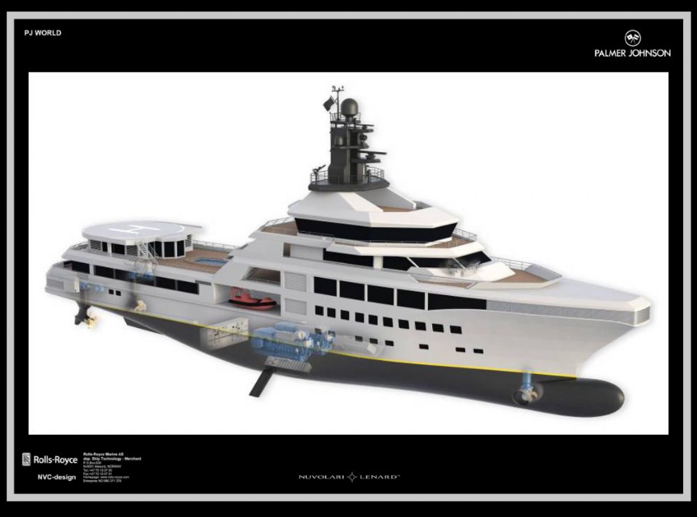 Rolls Royce Marine and Palmer Johnson have put forward a revolutionary approach. The PJ World superyacht is optimized to her operational profile offering a multitude of benefits. The main focus during the design process of the motoryacht PJ World was on her peak performance, endurance, reliability, low ownership costs and maintenance efficiency. PJ World motoryachts simple and clean design by Nuvolari Lenard has a number of environmentally conscious features, being beneficial to both cost and her performance.
