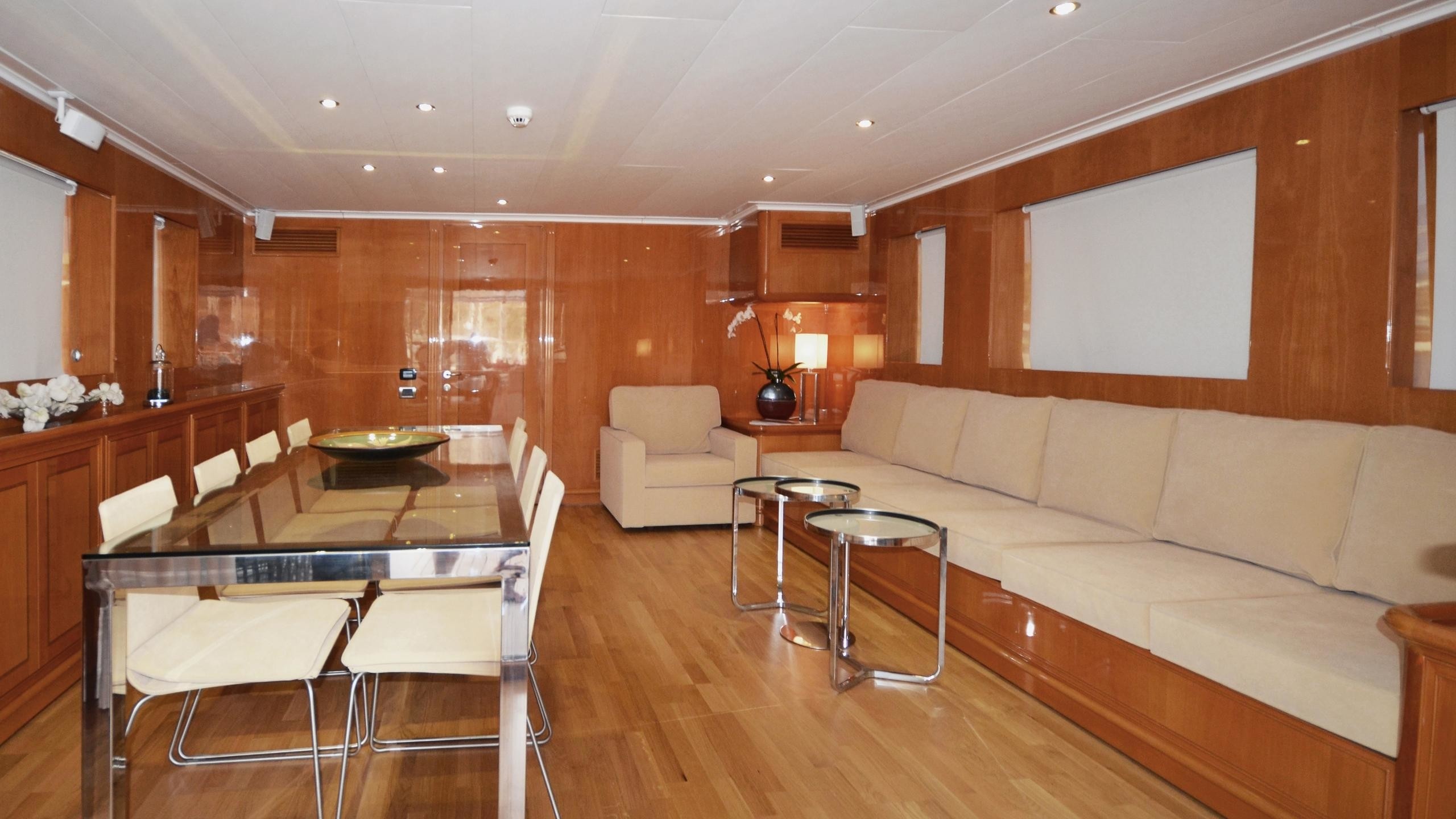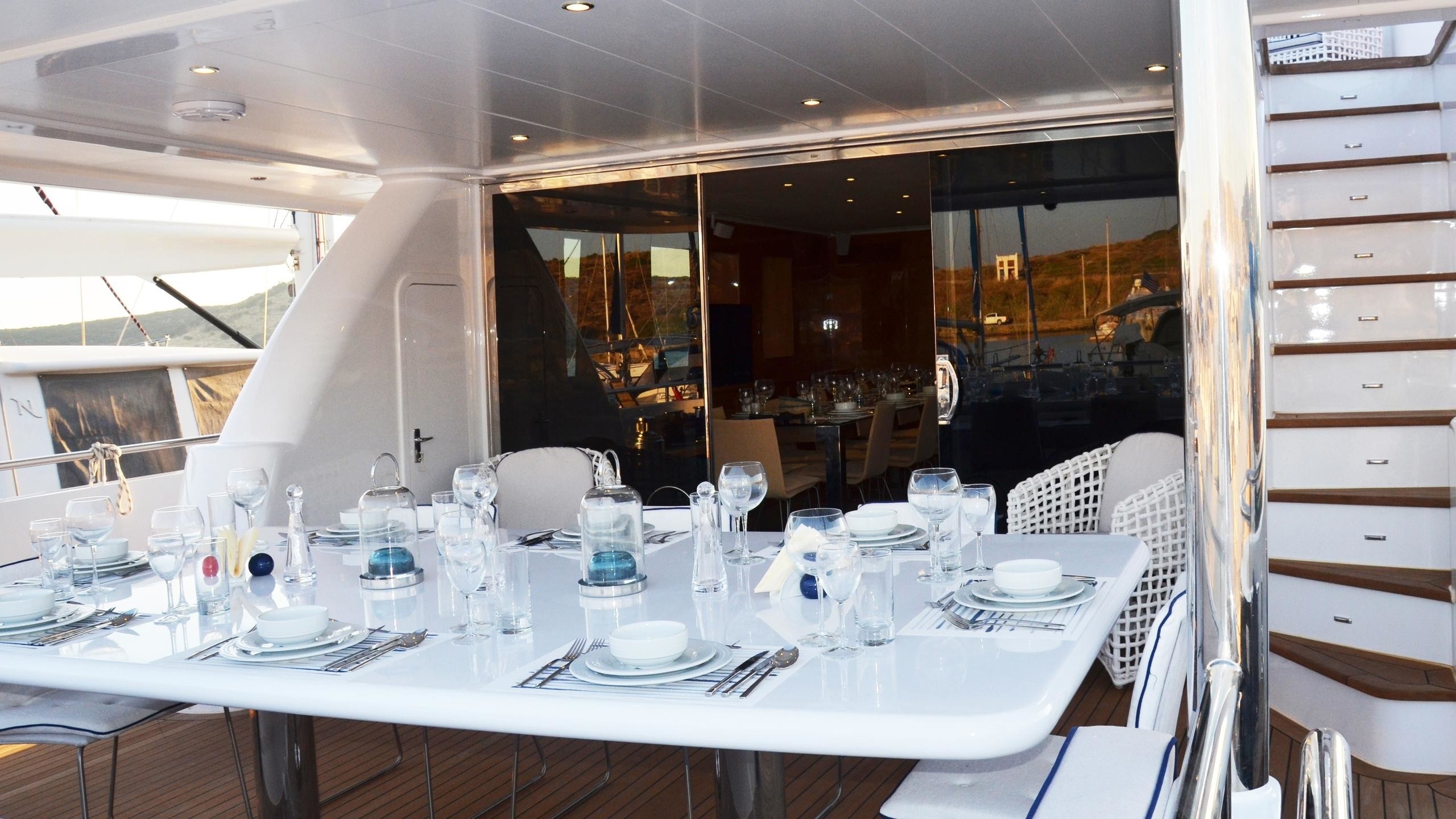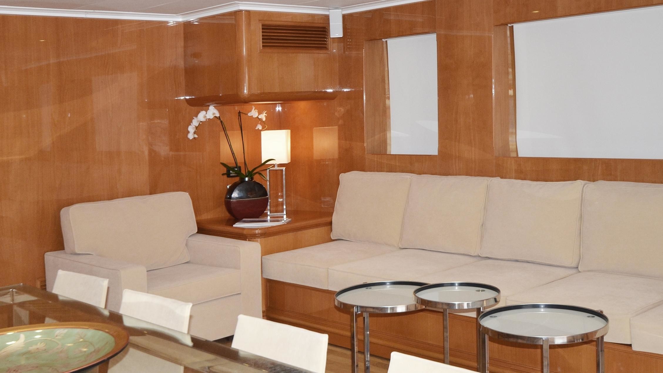 Luxury yacht Nimir offers lovely and comfortable accommodation in 5 well appointed cabins. These include a master stateroom forward on the main deck, as well as 2 double cabins and 2 twin cabins on the lower deck.