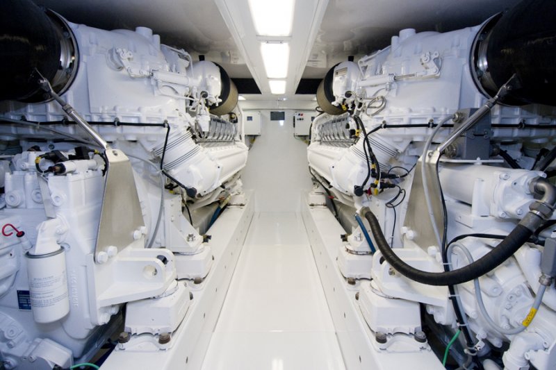 Run by twin MTU 16V2000 2,400hp diesel engines, the 70-foot luxury yacht Ravaganza (hull no. 48) can achieve an amazing top speed of 49 knots and a cruising speed of 41 knots. She has a beam of 6,10m (20') and a draft of 1,52m (5'6'').