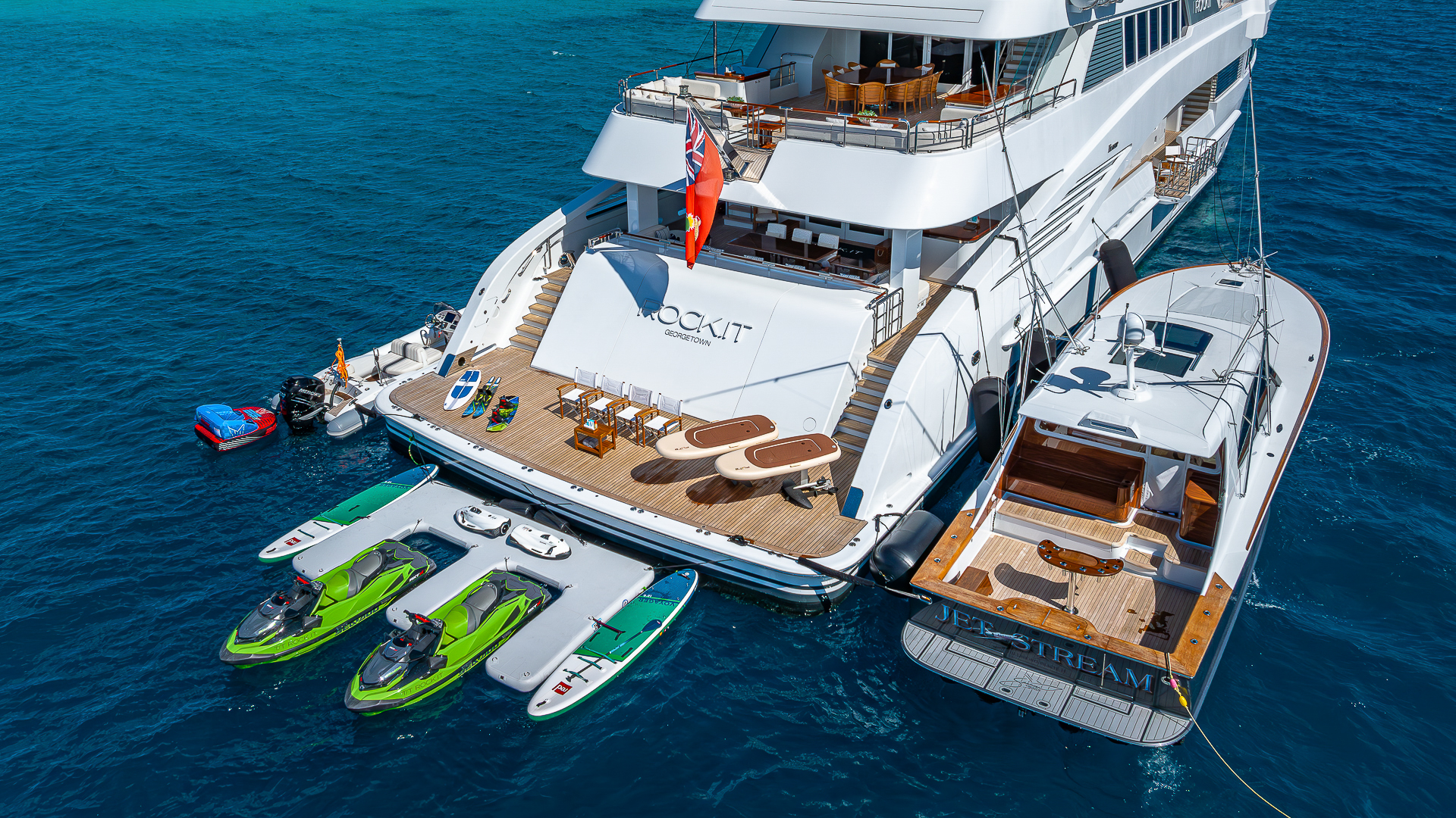 NOTABLE FEATURES OF ROCK.IT: ~Beautifully maintained superyacht ~Plenty of al fresco entertainment space ~Deck jacuzzi ~Main deck master with his and hers ensuites ~Amazing selection of water toys ~At anchor and underway stabilisers ~Air conditioning ~WiFi