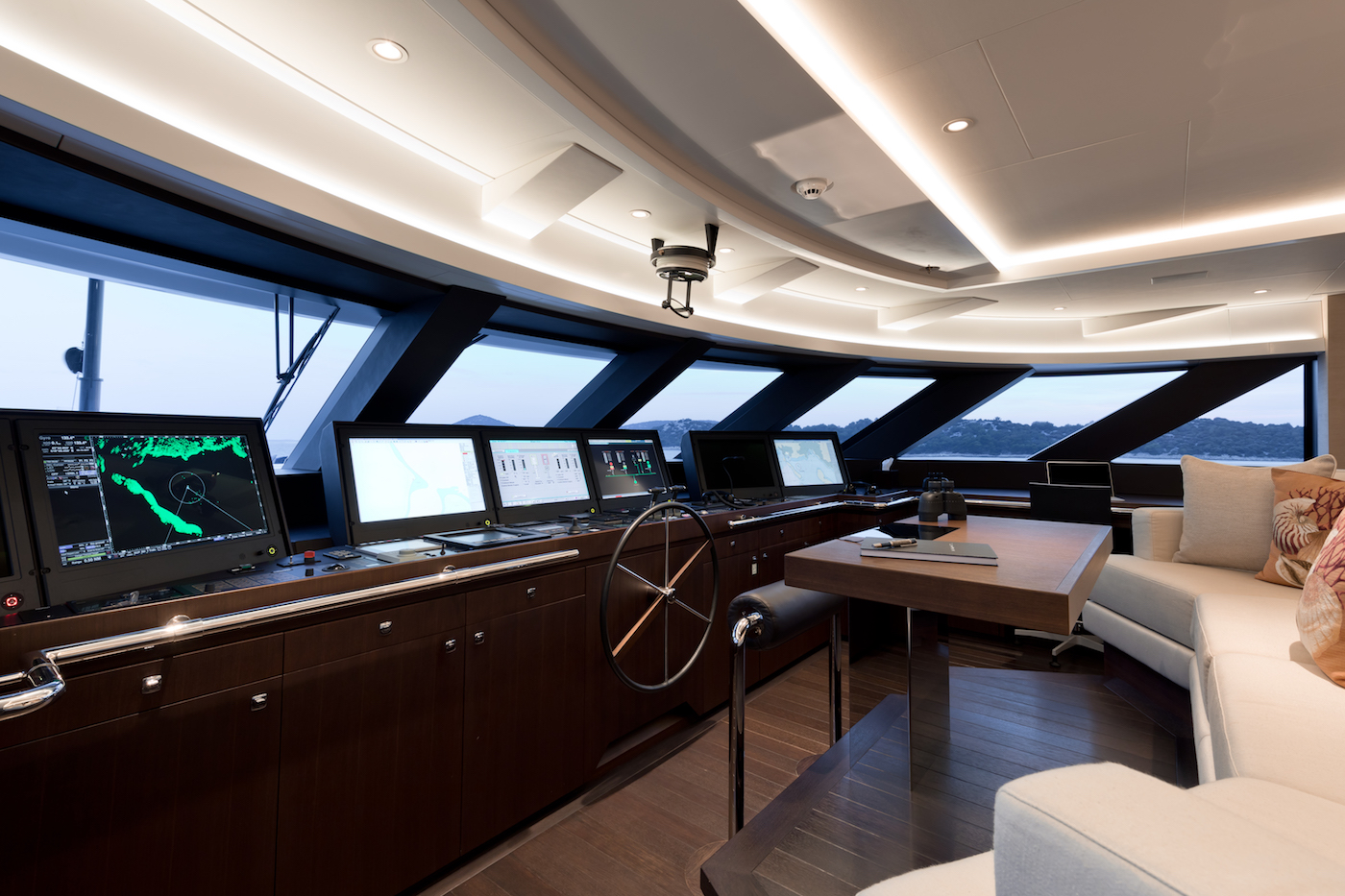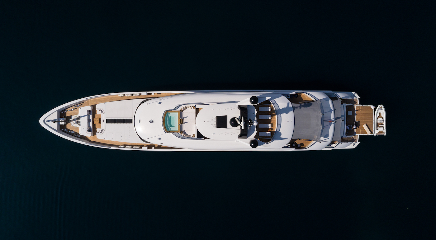 Her striking exterior boasts bold horizontal lines and development of the wheelhouse deck superstructure into the aft of the main deck. Superyacht Samurai was built with the innovative Fast Displacement Hull Form, developed by Van Oossanen Naval Architects. Her hull's unmatched efficiency allows a maximum speed of 21 knots.