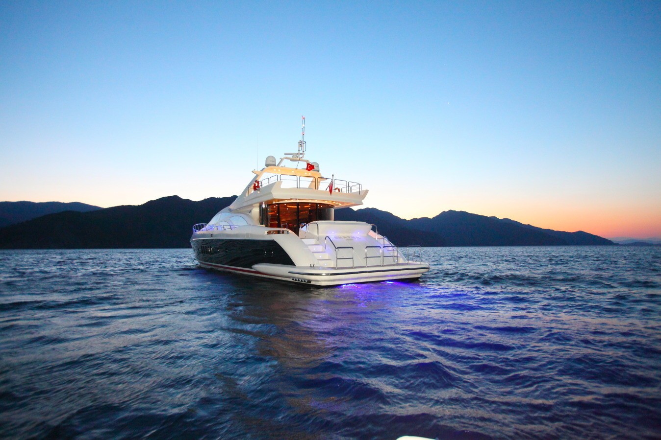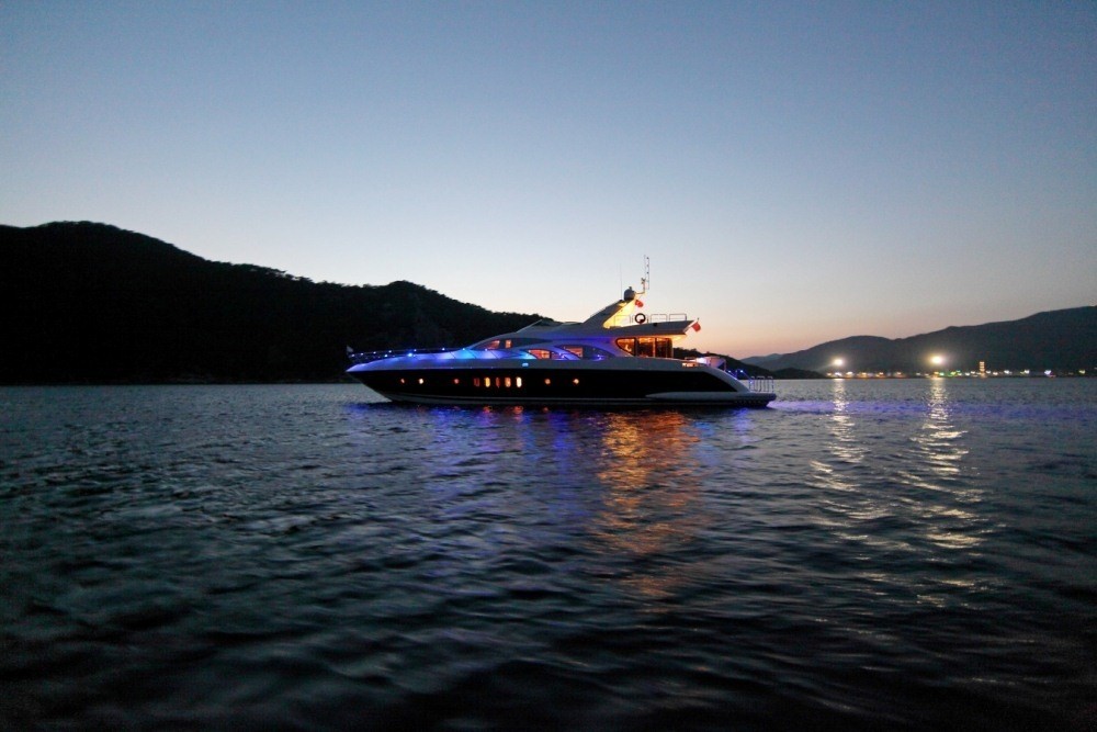 Luxury Motor Yacht SKAZKA is an Azimut Leonardo series yacht measuring 29.8m (97ft), built in 2002. The yacht can accommodate 7 guests in 3 spacious cabins. M/Y SKAZKA is powered by 2 MTU 2000HP engines capable of reaching top speeds of 30 knots.