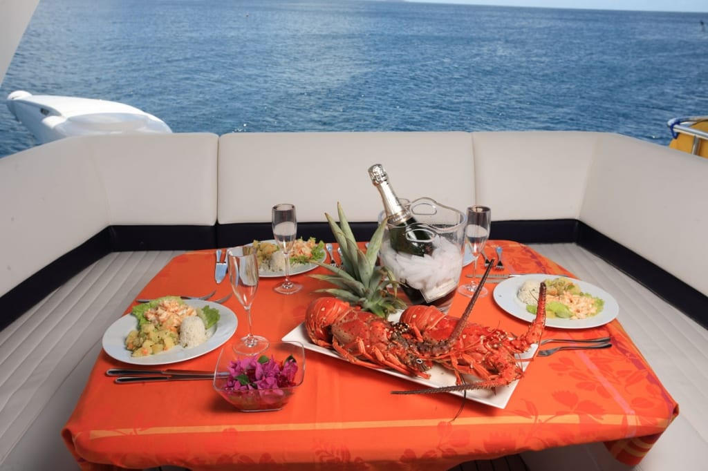 Fully air-conditioned and beautifully appointed, SORANA is equipped with TV/DVD/CD stereo systems in the Salon, Master and VIP Cabins, along with Ipod docking station in the salon. Her six passenger, 50hp dinghy is perfect for go-fast adventures on her wakeboard, kneeboard, or towing donut , or simply catch a ride and explore shore-side. Try your hand at catching your own dinner with her onboard fishing gear, or enjoy snorkeling the abundant coral reefs with her full complement of snorkel equipment, then enjoy a refreshing rinse under her on-deck shower. Rendezvous diving is also available upon request.