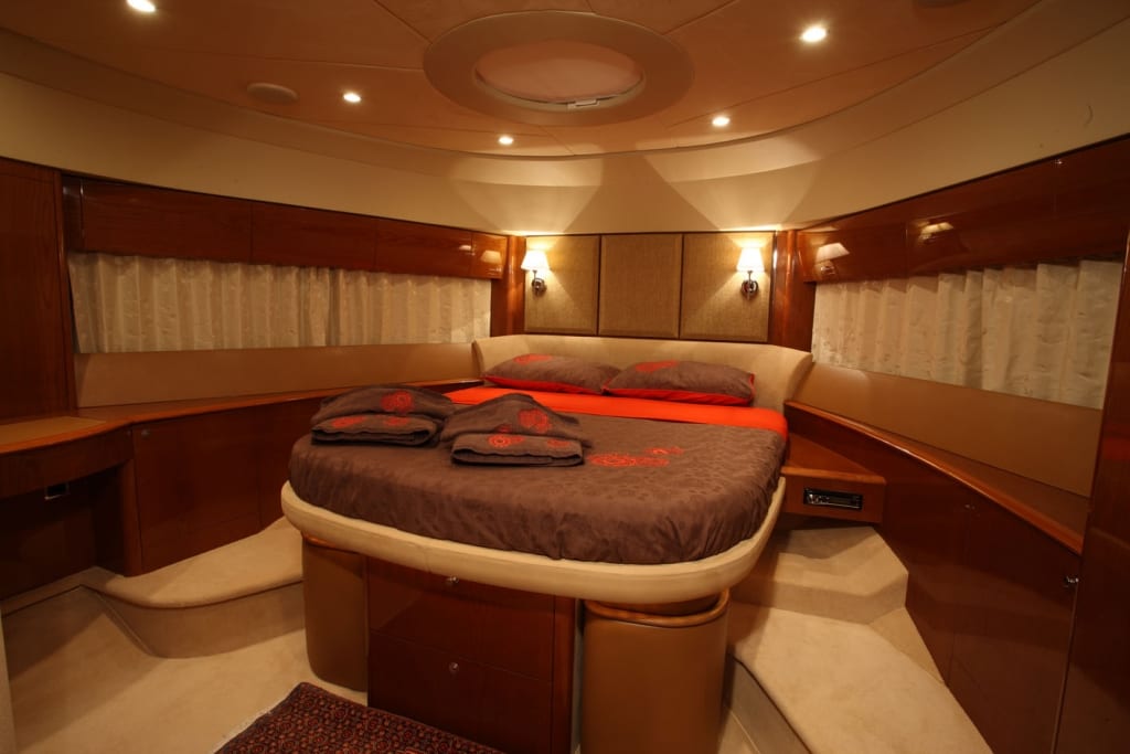 SORANA accommodates up to 6 guests in 3 spacious and stylishly appointed staterooms, all with private bathrooms including seperate shower and individual climate controls. The full-width Master Stateroom and VIP feature queen size beds, and private TV/DVD/CD entertainment systems. Elegantly furnished in neutral tones, with gleaming wood finishings, natural light and abundant storage, you will be plushly accommodated in this home away from home!