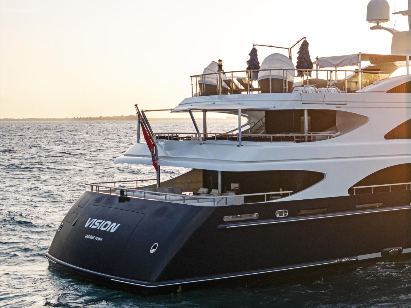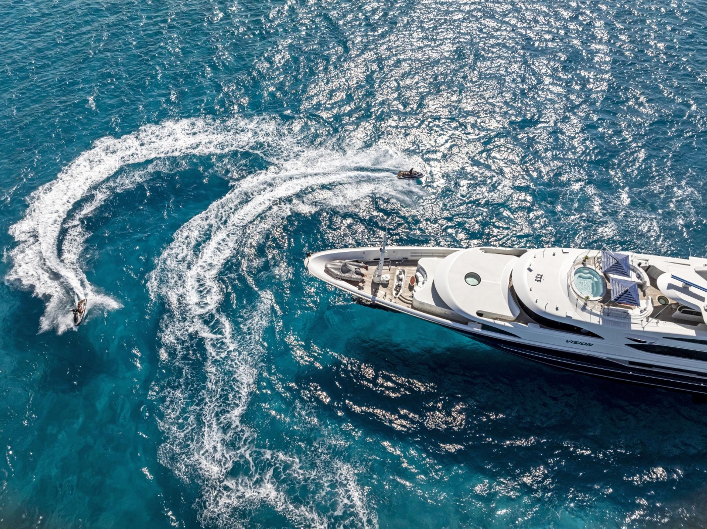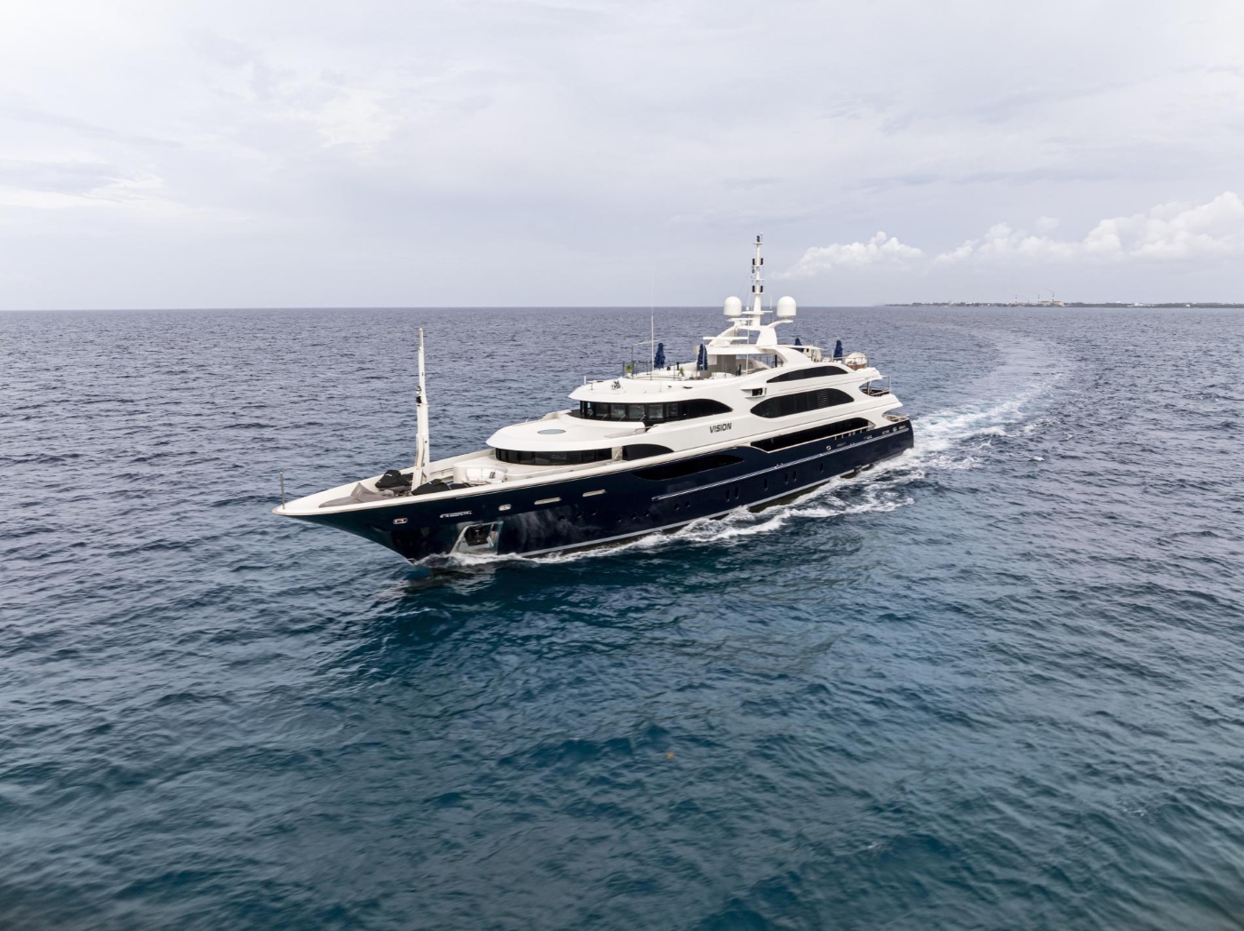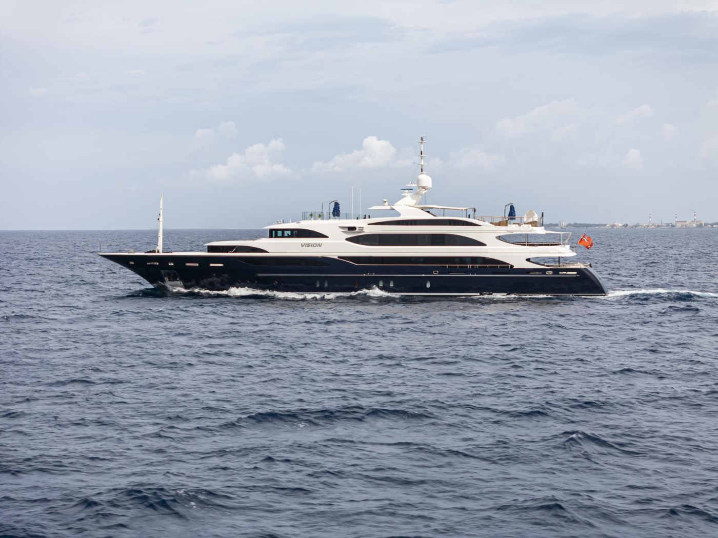 Yacht VISION can reach an approximate maximum speed of 16,5 knots and a cruising speed of about 13,5 knots. She consumes 350 Litres/Hr and has a range of 5000NM. The yacht is also equipped with stabilizers and zero-speed stabilizers