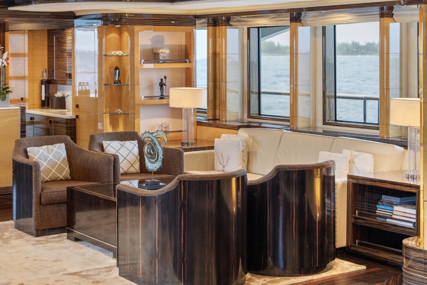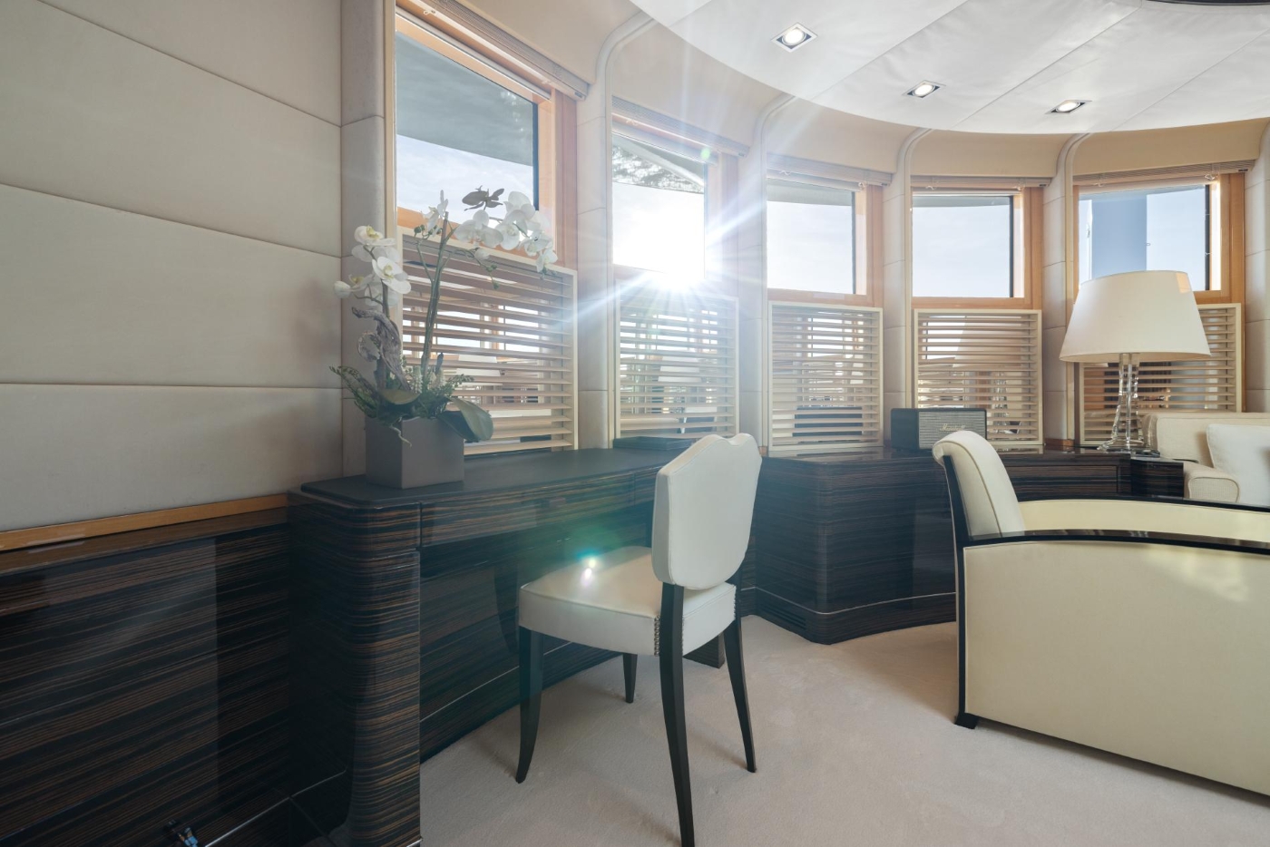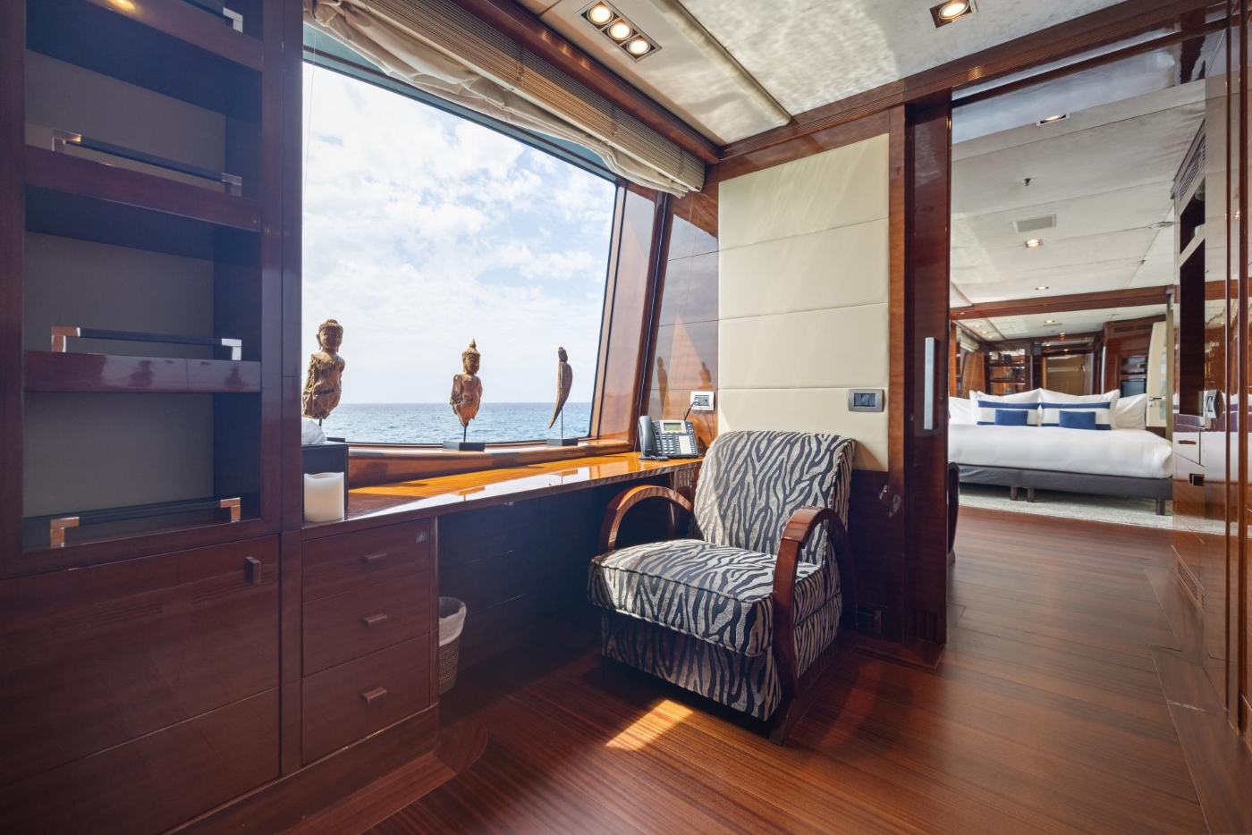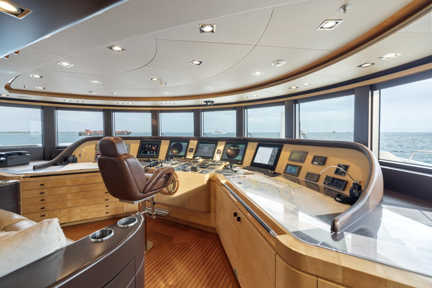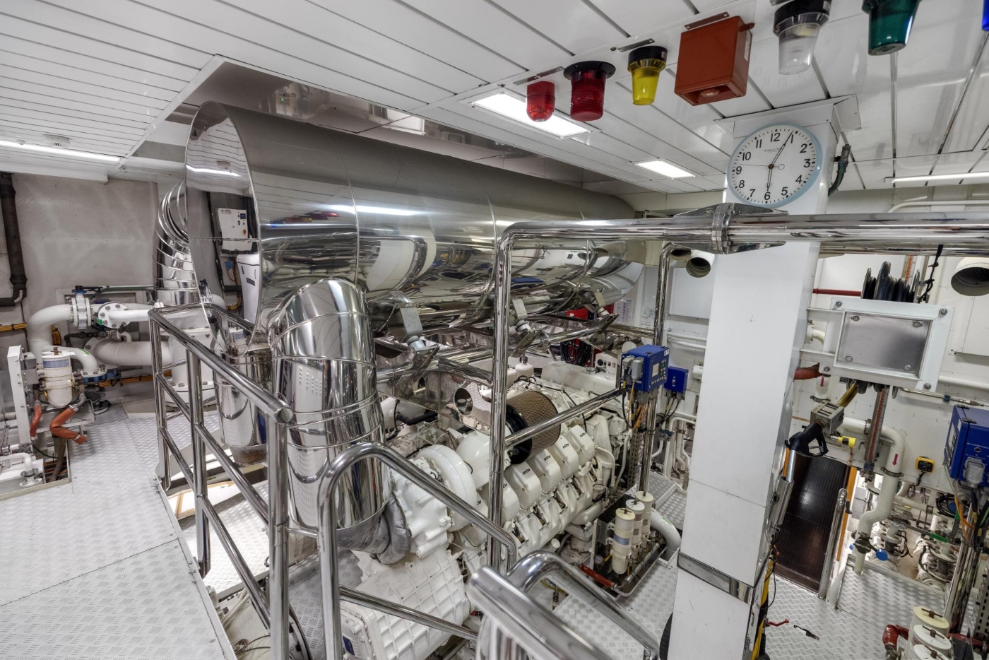 Yacht VISION can reach an approximate maximum speed of 16,5 knots and a cruising speed of about 13,5 knots. She consumes 350 Litres/Hr and has a range of 5000NM. The yacht is also equipped with stabilizers and zero-speed stabilizers