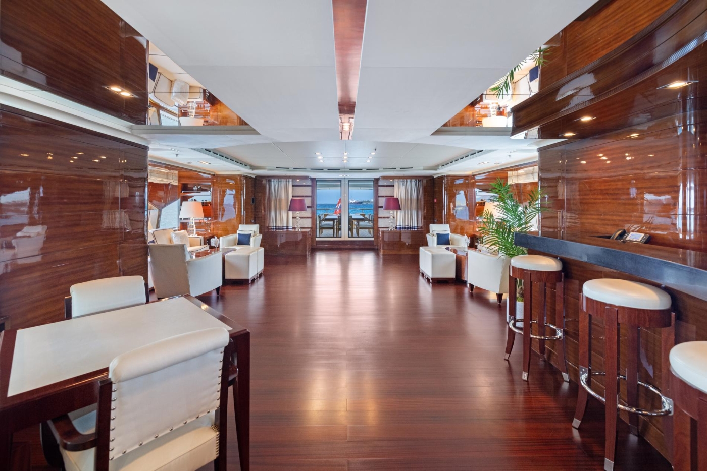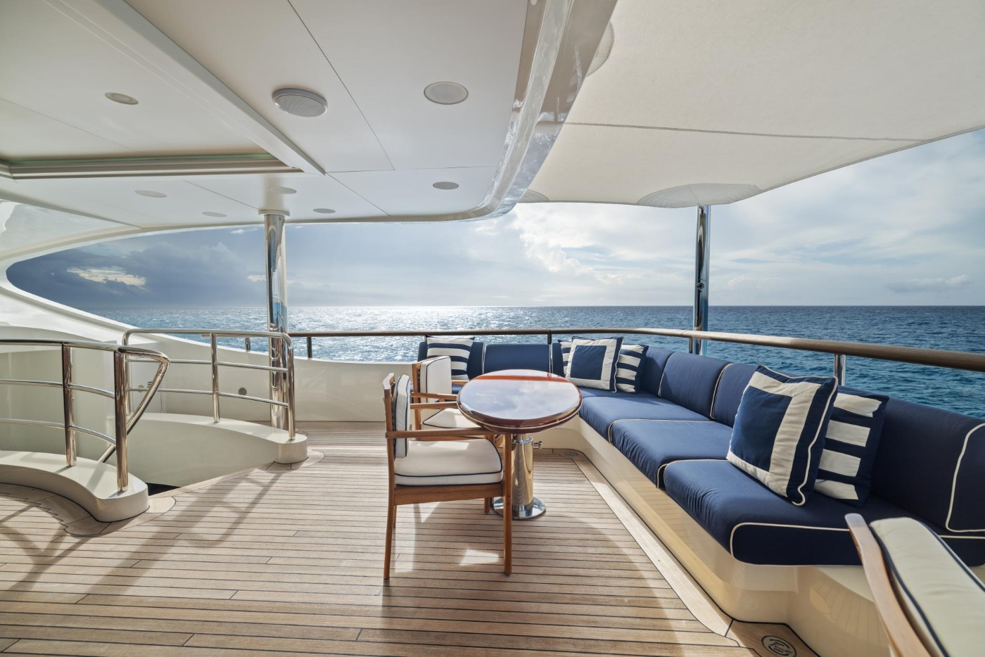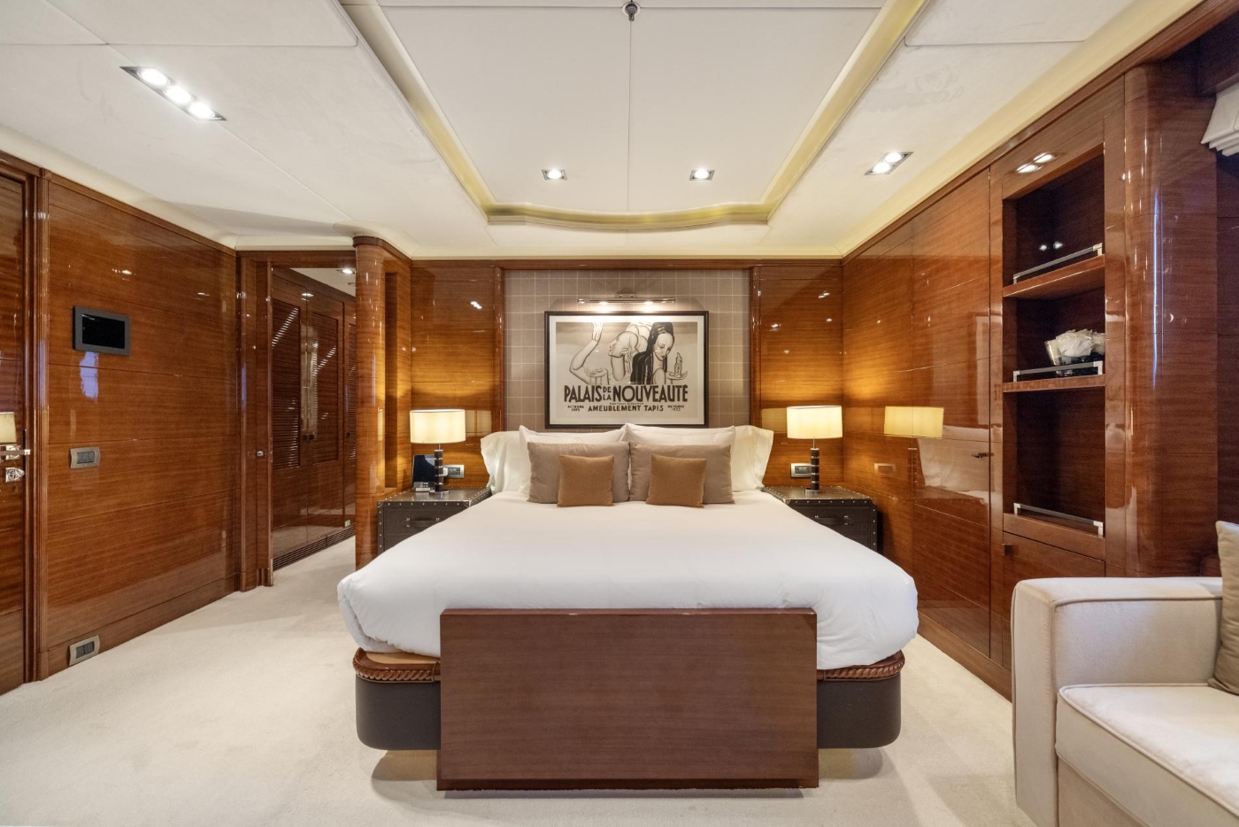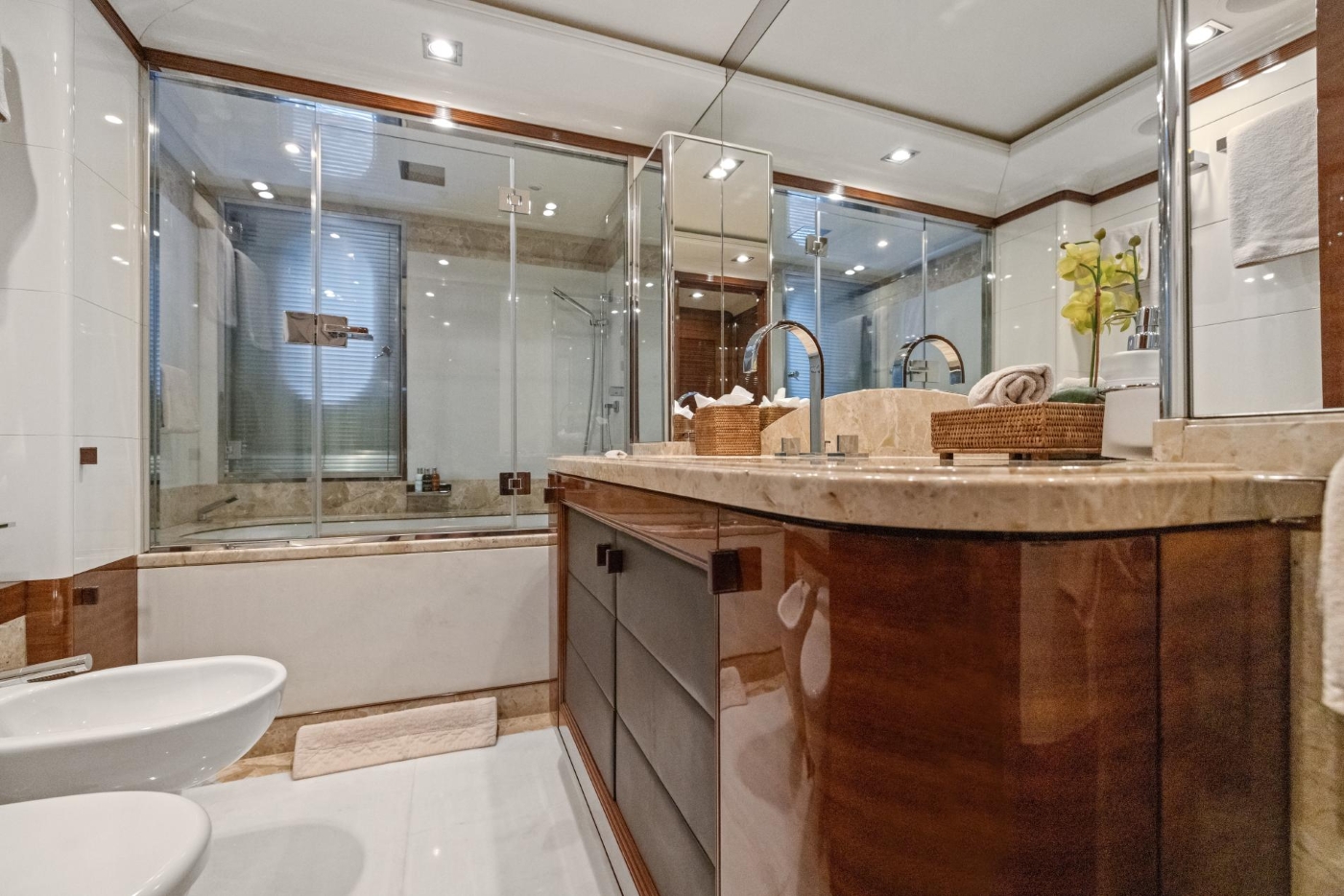 NOTABLE FEATURES: fab sun deck with 8 pax Jacuzzi ~ plenty of sun loungers ~ alfresco dining options ~ large main saloon with plenty of seating ~ full-beam master suite ~ VIP stateroom with sauna ~ disco area ~ Big screen on the main deck ~ amazing water toys selection including a water slide